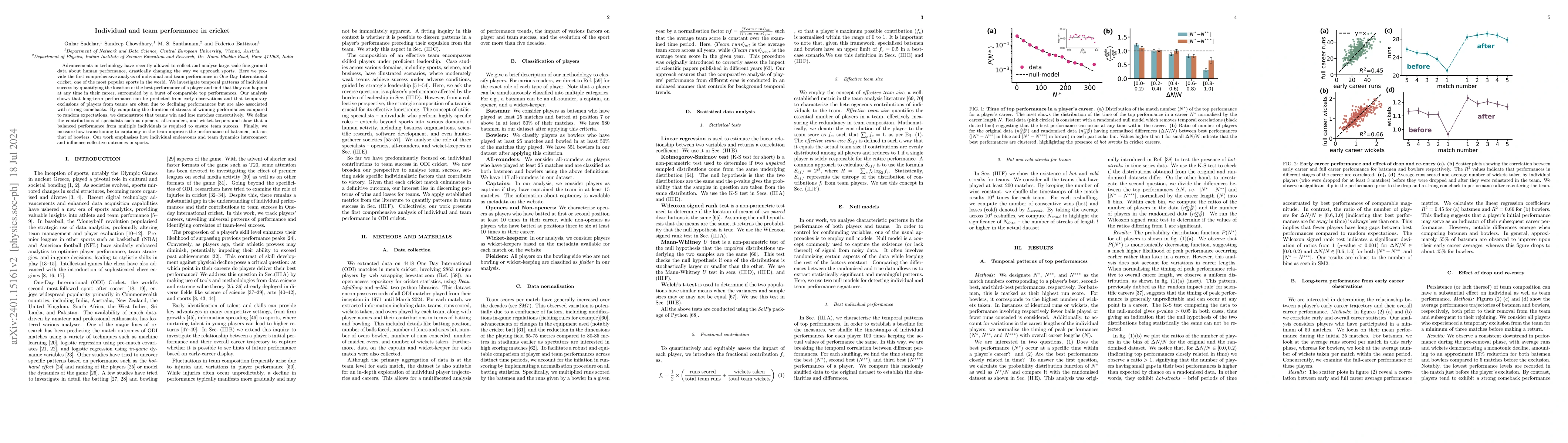 This study is novel in its systematic and quantitative analysis of cricket performance, identifying patterns in individual career trajectories and team dynamics that were previously not well-documented or understood.