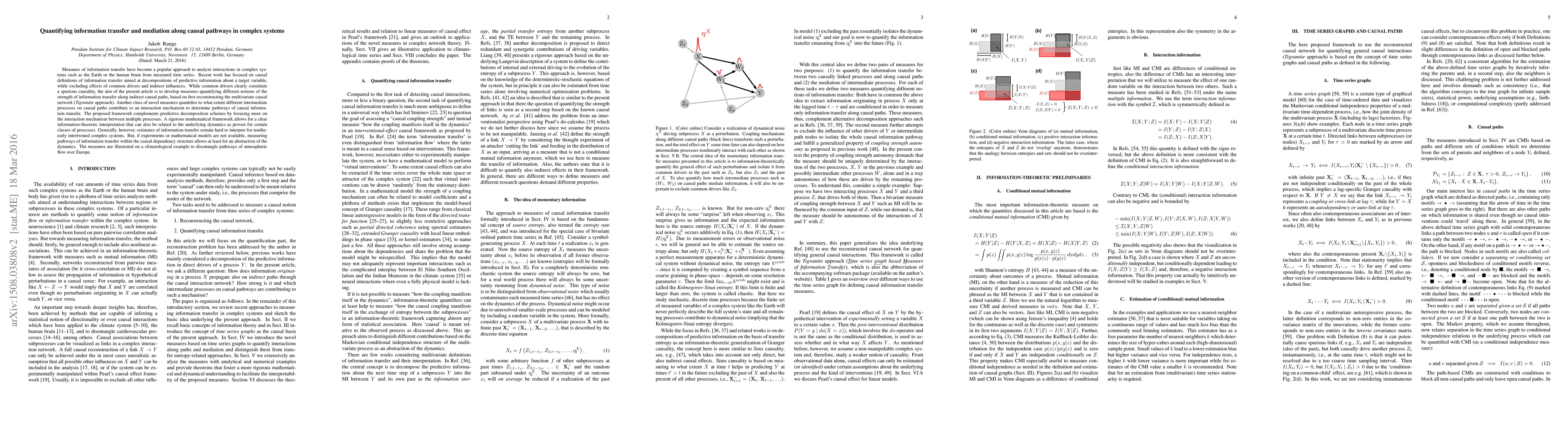 This paper develops measures to quantify information transfer along indirect causal pathways in complex systems, using the \emph{Tigramite} approach to reconstruct causal networks. It introduces novel metrics to assess the contribution of intermediate processes to causal interactions, providing an abstraction of the dynamics even in the absence of experimental or mathematical models.