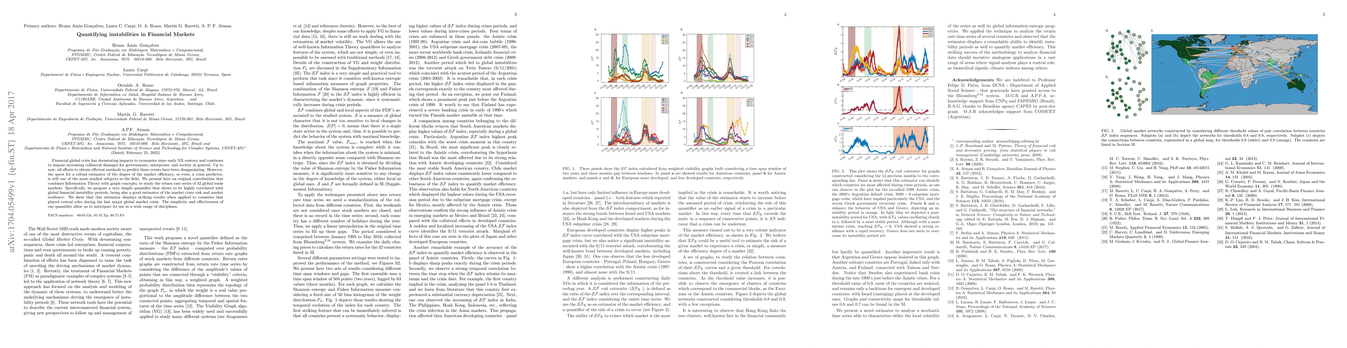 This paper proposes a novel method combining Information Theory and graph concepts to quantify financial market instabilities. The developed simple quantifier correlates strongly with periods of global financial instability, serving as a predictor of crisis risk and market resilience, with promising applications across various disciplines.