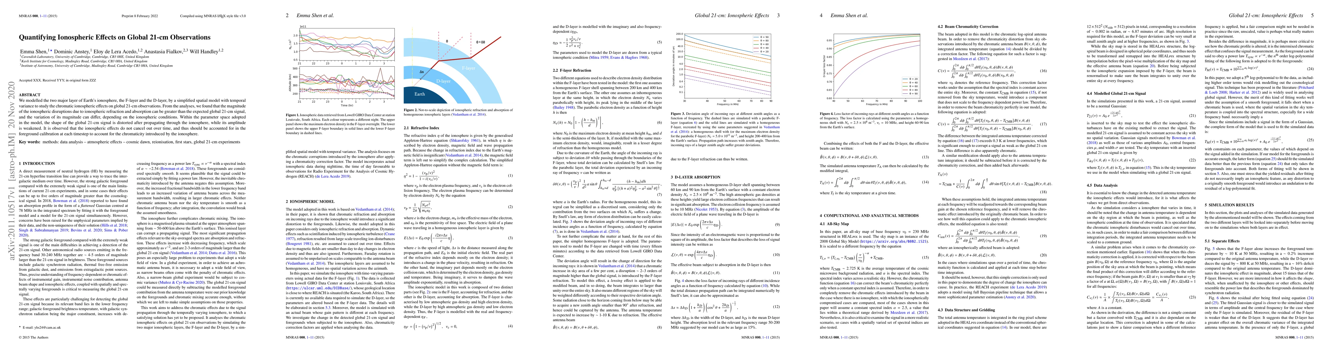 The paper presents a model for ionospheric effects on global 21-cm observations, including a modified chromaticity correction equation to address these distortions.