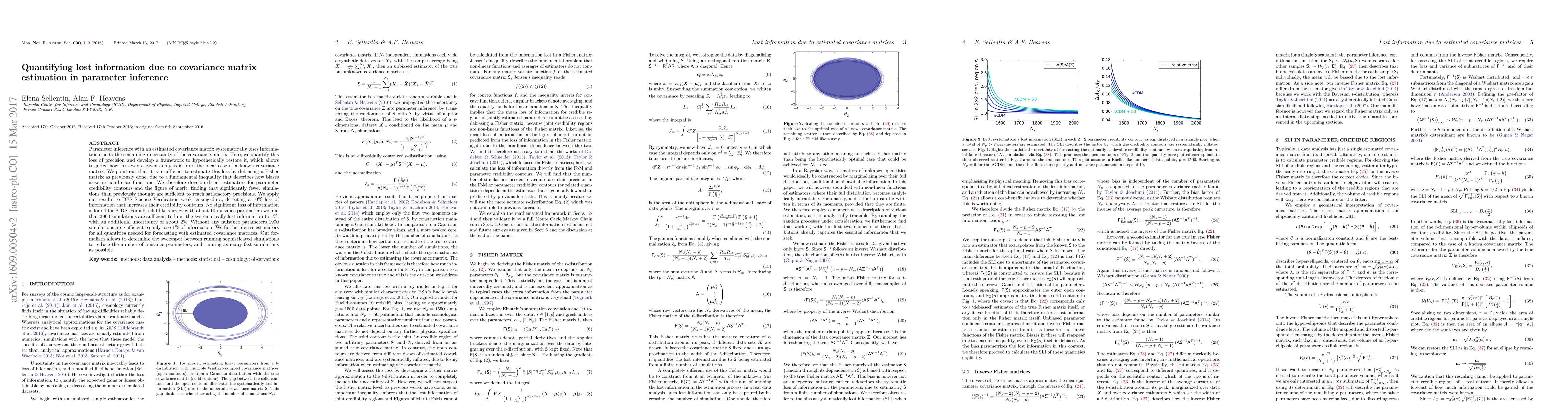 This paper quantifies the information loss in parameter inference due to uncertainty in the estimated covariance matrix, developing a framework to restore this lost precision. It finds a 10% information loss in DES weak lensing data and shows that 2900 simulations are needed to limit the loss to 1% for a Euclid-like survey with 10 nuisance parameters.