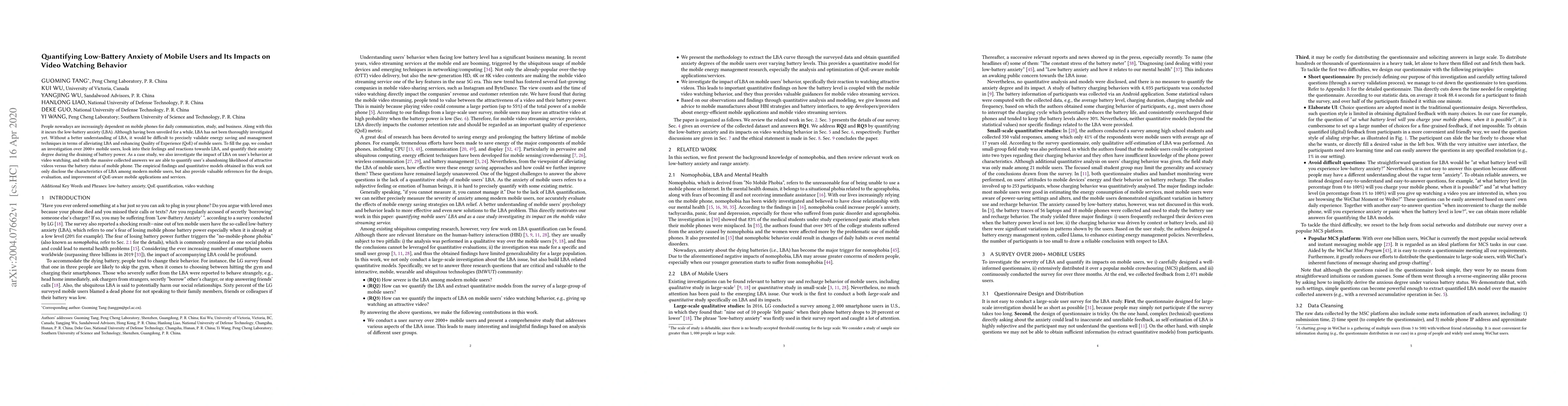 This study investigates the phenomenon of low-battery anxiety (LBA) among mobile users and quantifies its impact on video watching behavior. Through a survey of over 2000 users, the research reveals the anxiety levels during battery depletion and how it influences video abandonment likelihood, providing insights for enhancing Quality of Experience in mobile applications.