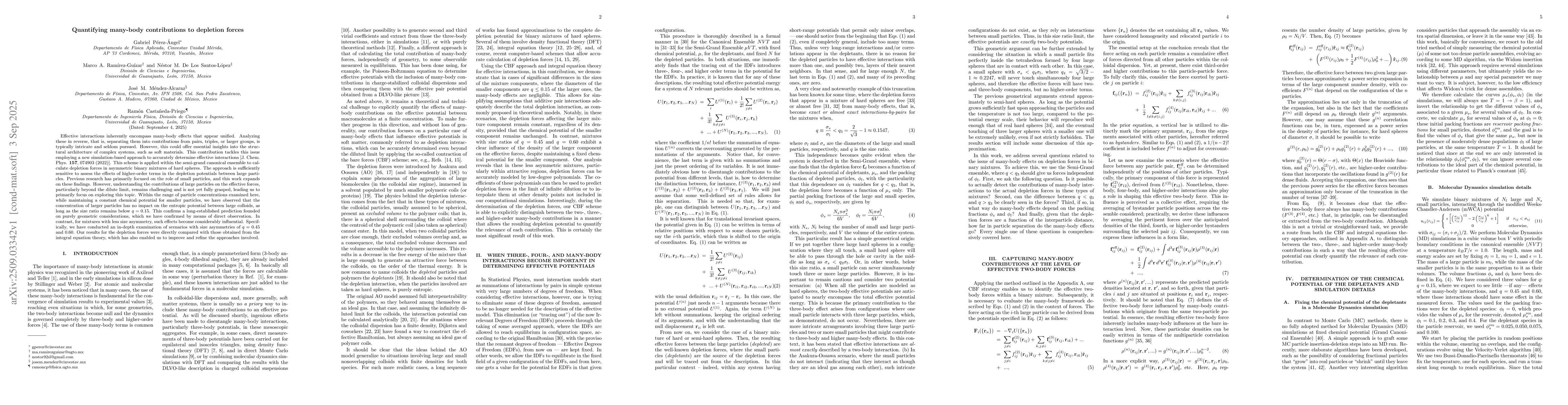 Effective interactions inherently encompass many-body effects that appear unified. Analyzing these in reverse, that is, separating them into contributions from pairs, triples, or larger groups, is typically intricate and seldom pursued. However, this could offer essential insights into the structural architecture of complex systems, such as soft materials. This contribution tackles this issue employing a new simulation-based approach to accurately determine effective interactions. The approach is sufficiently sensitive to assess the effects of higher-order terms in the depletion potentials between large particles. Previous research has primarily focused on the role of small particles, and this work expands on these findings. However, understanding the contributions of large particles on the effective forces, particularly beyond the dilute limit, remains challenging and is not yet fully grasped, leading us to primarily focus on exploring this topic. Within the range of particle concentrations examined here, while maintaining a constant chemical potential for smaller particles, we have observed that the concentration of larger particles has no impact on the entropic potential between large colloids, as long as the size ratio remains below $q=0.15$. This confirms a long-established prediction founded on purely geometric considerations, which we have confirmed by means of direct observation. In contrast, for mixtures with less size asymmetry, such effects become considerably influential. Specifically, we have conducted an in-depth examination of scenarios with size asymmetries of $q=0.45$ and $0.60$. Our results for the depletion forces were directly compared with those obtained from the integral equation theory, which has also enabled us to improve and refine the approaches involved.