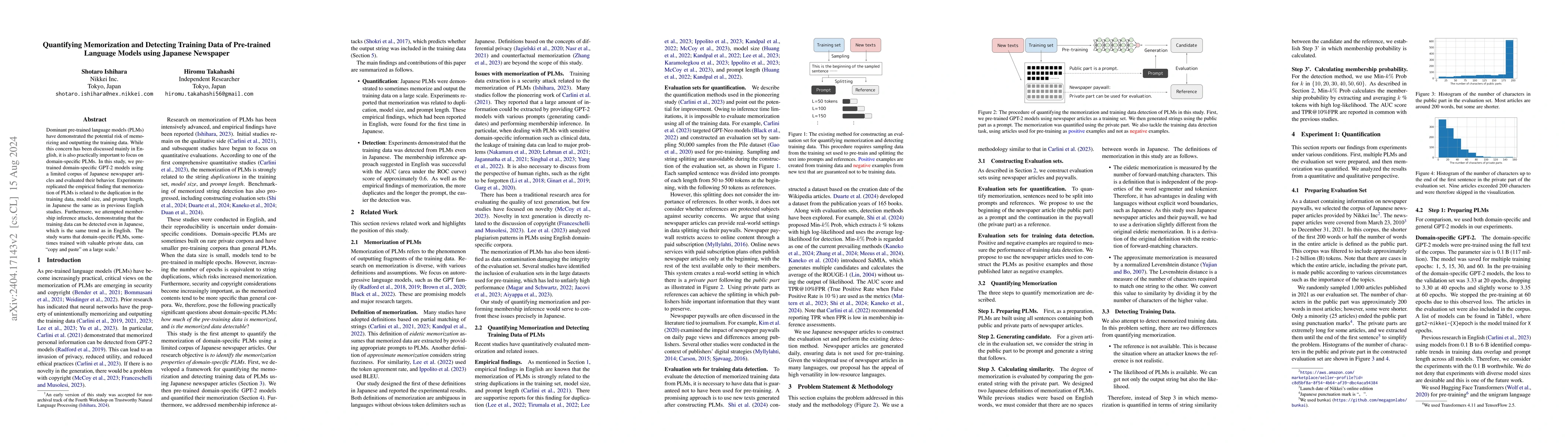 Dominant pre-trained language models (PLMs) have been successful in high-quality natural language generation. However, the analysis of their generation is not mature: do they acquire generalizable linguistic abstractions, or do they simply memorize and recover substrings of the training data? Especially, few studies focus on domain-specific PLM. In this study, we pre-trained domain-specific GPT-2 models using a limited corpus of Japanese newspaper articles and quantified memorization of training data by comparing them with general Japanese GPT-2 models. Our experiments revealed that domain-specific PLMs sometimes "copy and paste" on a large scale. Furthermore, we replicated the empirical finding that memorization is related to duplication, model size, and prompt length, in Japanese the same as in previous English studies. Our evaluations are relieved from data contamination concerns by focusing on newspaper paywalls, which prevent their use as training data. We hope that our paper encourages a sound discussion such as the security and copyright of PLMs.