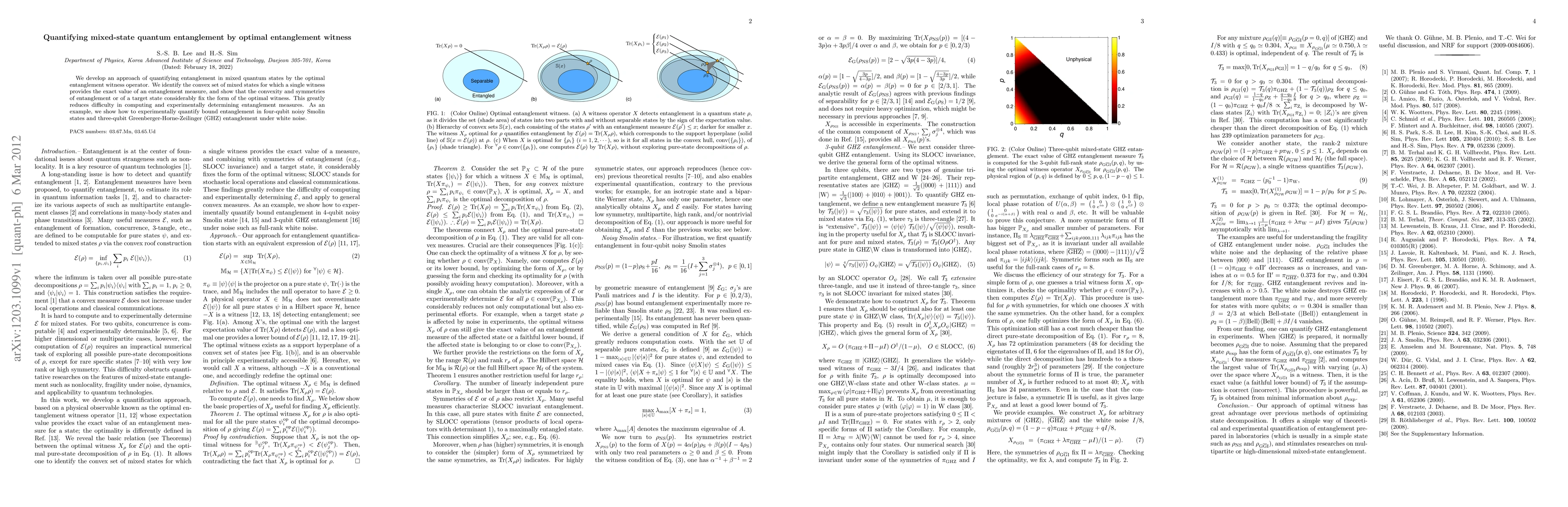 We develop an approach of quantifying entanglement in mixed quantum states by the optimal entanglement witness operator. We identify the convex set of mixed states for which a single witness provides the exact value of an entanglement measure, and show that the convexity, properties, and symmetries of entanglement or of a target state considerably fix the form of the optimal witness. This greatly reduces difficulty in computing and experimentally determining entanglement measures. As an example, we show how to experimentally quantify bound entanglement in four-qubit noisy Smolin states and three-qubit Greenberger-Horne-Zeilinger (GHZ) entanglement under white noise. For general measures and states, we provide a numerical method to efficiently optimize witness.