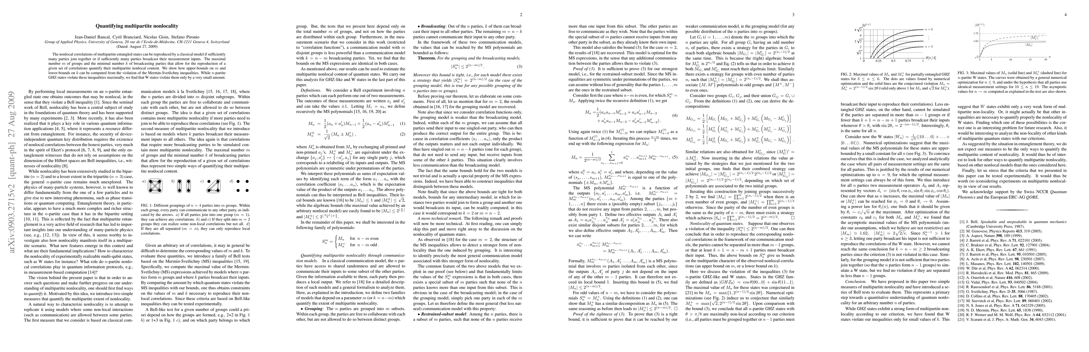 The nonlocal correlations of multipartite entangled states can be reproduced by a classical model if sufficiently many parties join together or if sufficiently many parties broadcast their measurement inputs. The maximal number m of groups and the minimal number k of broadcasting parties that allow for the reproduction of a given set of correlations quantify their multipartite nonlocal content. We show how upper-bounds on m and lower-bounds on k can be computed from the violation of the Mermin-Svetlichny inequalities. While n-partite GHZ states violate these inequalities maximally, we find that W states violate them only by a very small amount.