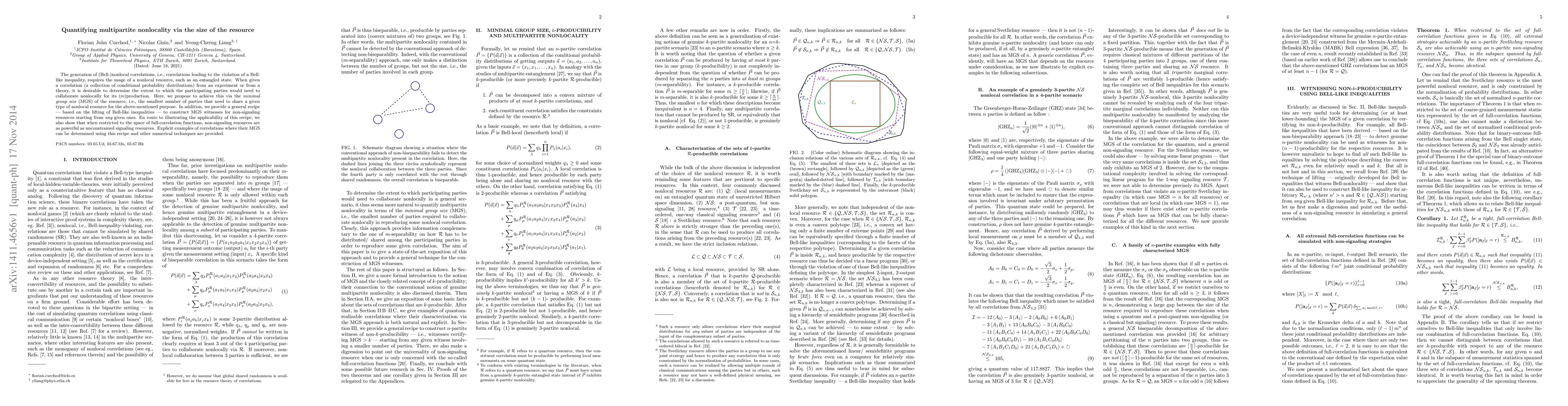 The generation of (Bell-)nonlocal correlations, i.e., correlations leading to the violation of a Bell-like inequality, requires the usage of a nonlocal resource, such as an entangled state. When given a correlation (a collection of conditional probability distributions) from an experiment or from a theory, it is desirable to determine the extent to which the participating parties would need to collaborate nonlocally for its (re)production. Here, we propose to achieve this via the minimal group size (MGS) of the resource, i.e., the smallest number of parties that need to share a given type of nonlocal resource for the above-mentioned purpose. In addition, we provide a general recipe --- based on the lifting of Bell-like inequalities --- to construct MGS witnesses for non-signaling resources starting from any given ones. En route to illustrating the applicability of this recipe, we also show that when restricted to the space of full-correlation functions, non-signaling resources are as powerful as unconstrained signaling resources. Explicit examples of correlations where their MGS can be determined using this recipe and other numerical techniques are provided.