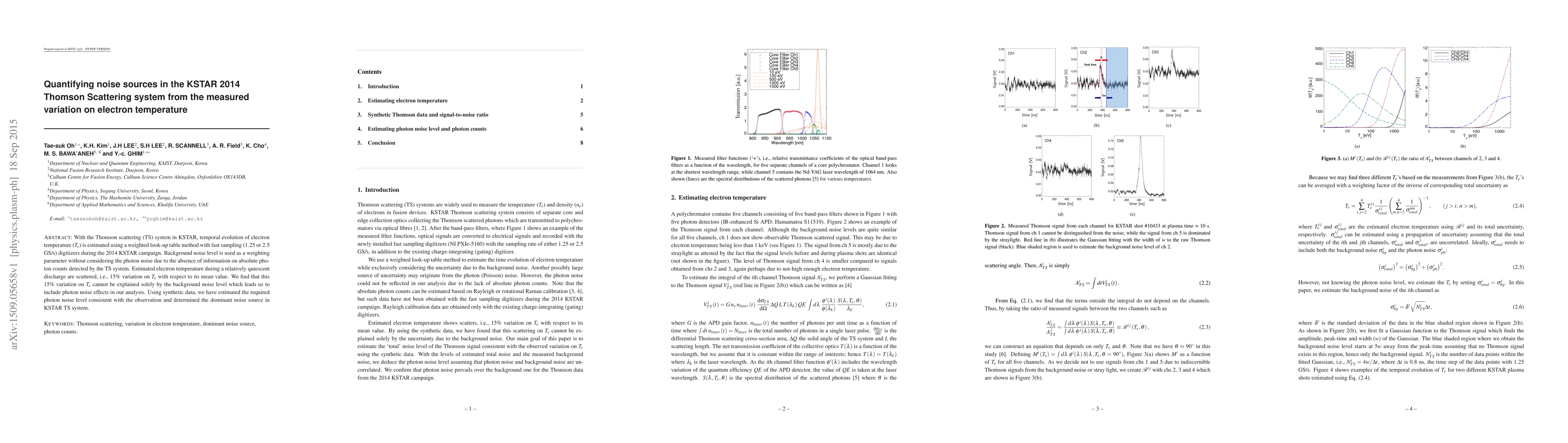 With the Thomson scattering (TS) system in KSTAR, temporal evolution of electron temperature ($T_e$) is estimated using a weighted look-up table method with fast sampling ($1.25$ or $2.5$ GS/s) digitizers during the 2014 KSTAR campaign. Background noise level is used as a weighting parameter without considering the photon noise due to the absence of information on absolute photon counts detected by the TS system. Estimated electron temperature during a relatively quiescent discharge are scattered, i.e., $15$\% variation on $T_e$ with respect to its mean value. We find that this $15$\% variation on $T_e$ cannot be explained solely by the background noise level which leads us to include photon noise effects in our analysis. Using synthetic data, we have estimated the required photon noise level consistent with the observation and determined the dominant noise source in KSTAR TS system.
