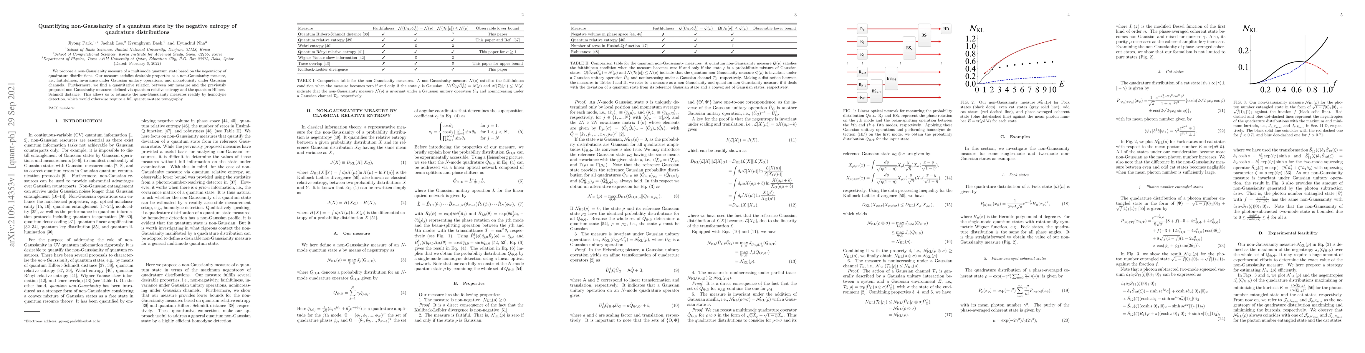 This paper introduces a new non-Gaussianity measure for multimode quantum states based on the negentropy of quadrature distributions, demonstrating its properties like faithfulness and invariance. It also relates this measure to existing non-Gaussianity metrics, enabling estimation via homodyne detection instead of full quantum tomography.