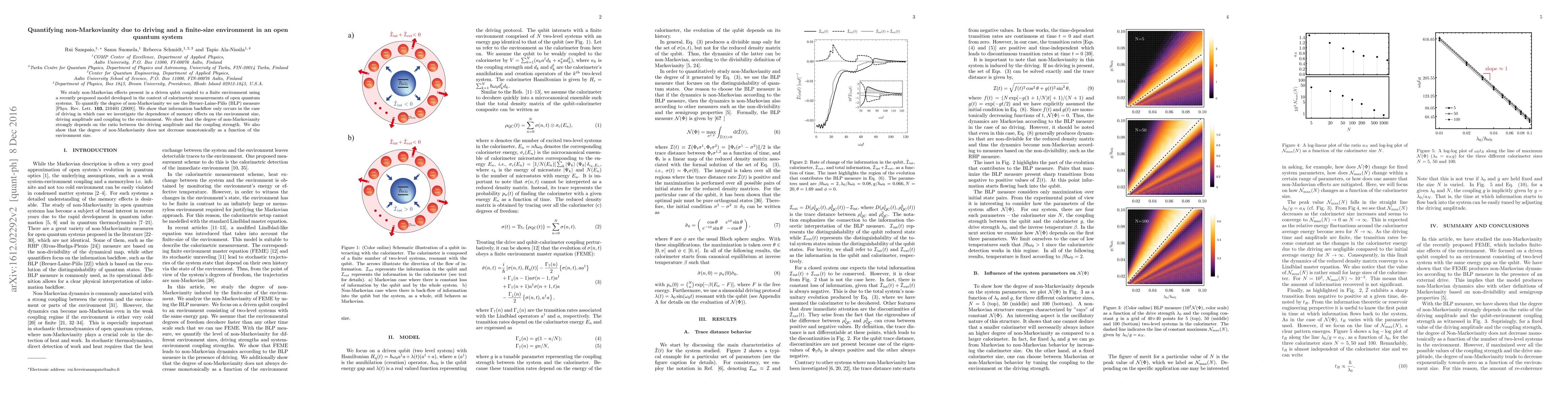 This paper quantifies non-Markovianity in a driven qubit system using the BLP measure, showing that information backflow occurs due to driving. It finds that non-Markovianity depends on the driving amplitude relative to the coupling strength and does not consistently decrease with a larger environment size.
