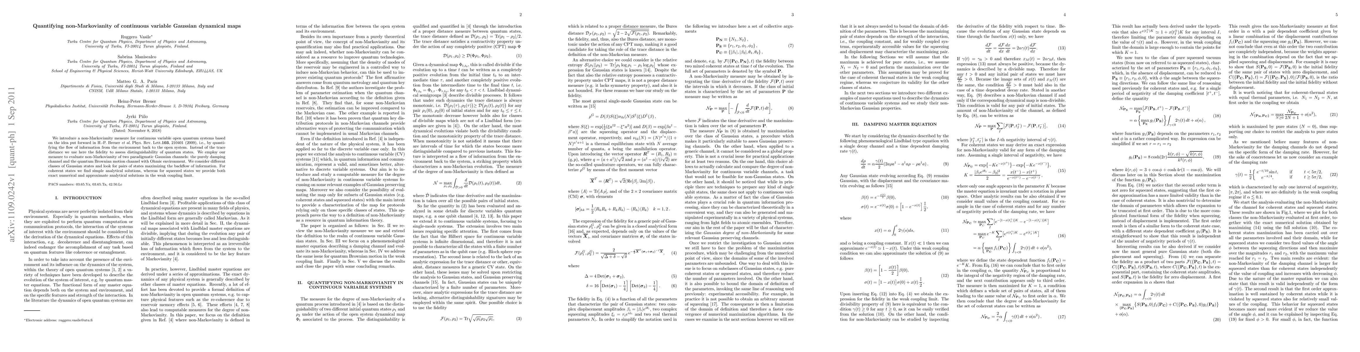 This paper introduces a new measure for quantifying non-Markovianity in continuous variable Gaussian dynamical maps, using fidelity instead of trace distance. It evaluates this measure for Gaussian channels like damping and quantum Brownian motion, finding analytical solutions for coherent states and numerical and approximate solutions for squeezed states.