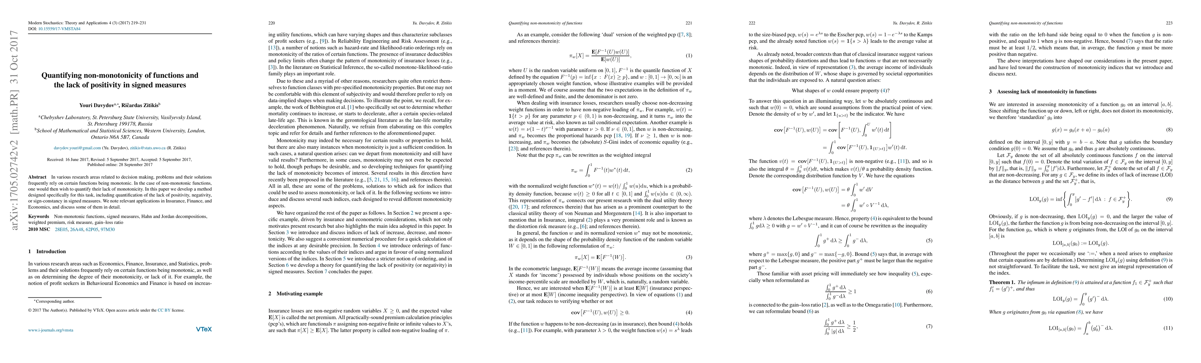 In various research areas related to decision making, problems and their solutions frequently rely on certain functions being monotonic. In the case of non-monotonic functions, one would then wish to quantify their lack of monotonicity. In this paper we develop a method designed specifically for this task, including quantification of the lack of positivity, negativity, or sign-constancy in signed measures. We note relevant applications in Insurance, Finance, and Economics, and discuss some of them in detail.