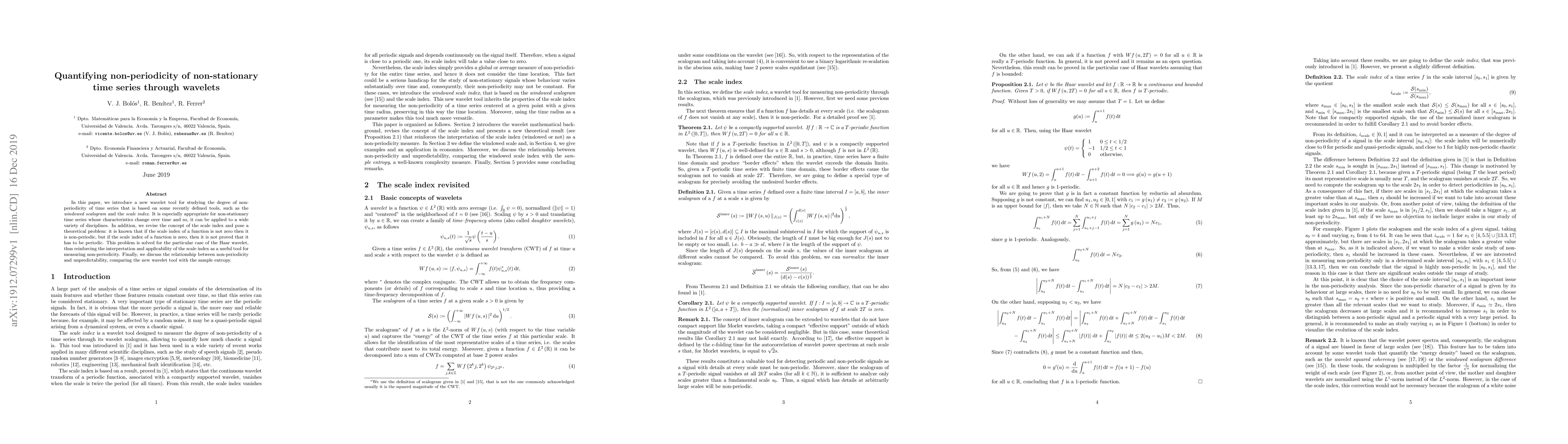 A new wavelet tool is introduced to study non-periodicity in time series, providing a method for analyzing non-stationary data with changing characteristics. The tool resolves a theoretical problem related to the scale index, showing its applicability in various disciplines.