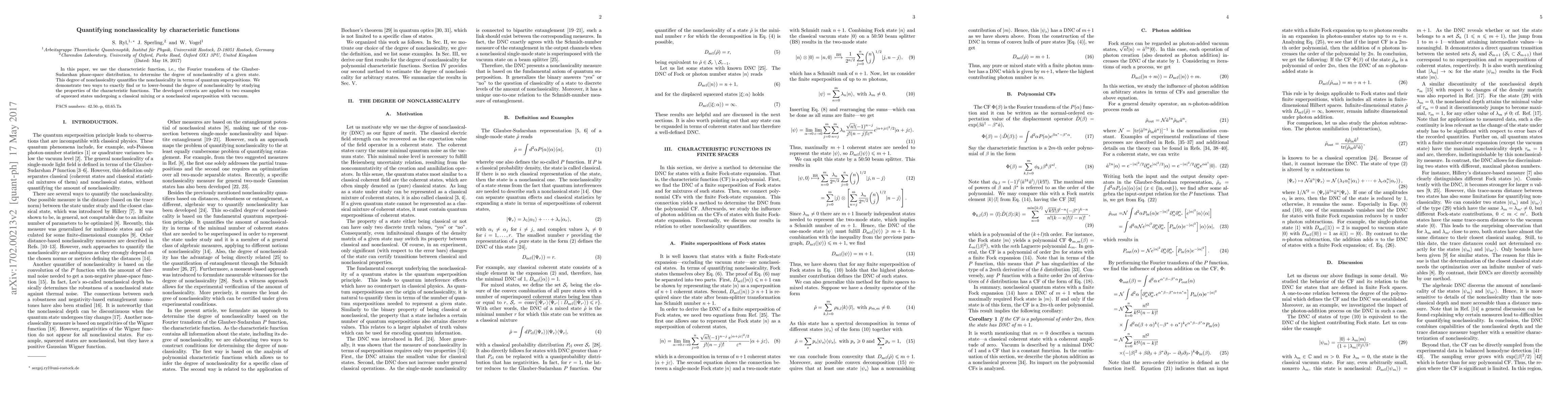 This paper quantifies nonclassicality in quantum states using characteristic functions, which are Fourier transforms of the Glauber-Sudarshan phase-space distribution. It proposes methods to determine the degree of nonclassicality and applies these criteria to squeezed states undergoing classical mixing or nonclassical superposition with vacuum.