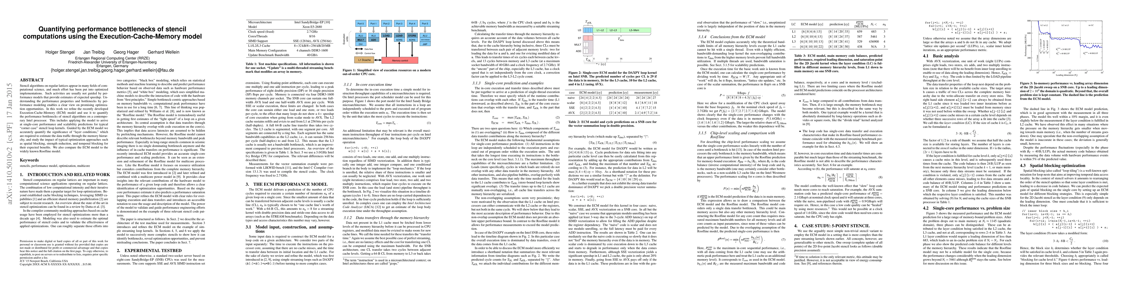 Stencil algorithms on regular lattices appear in many fields of computational science, and much effort has been put into optimized implementations. Such activities are usually not guided by performance models that provide estimates of expected speedup. Understanding the performance properties and bottlenecks by performance modeling enables a clear view on promising optimization opportunities. In this work we refine the recently developed Execution-Cache-Memory (ECM) model and use it to quantify the performance bottlenecks of stencil algorithms on a contemporary Intel processor. This includes applying the model to arrive at single-core performance and scalability predictions for typical corner case stencil loop kernels. Guided by the ECM model we accurately quantify the significance of "layer conditions," which are required to estimate the data traffic through the memory hierarchy, and study the impact of typical optimization approaches such as spatial blocking, strength reduction, and temporal blocking for their expected benefits. We also compare the ECM model to the widely known Roofline model.