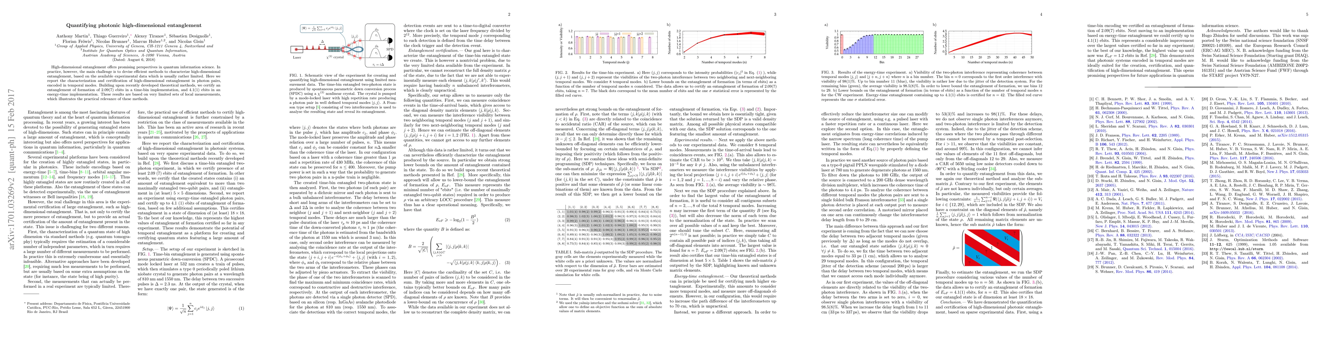 This paper reports on the characterization and certification of high-dimensional entanglement in photon pairs using temporal modes, achieving 2.09(7) ebits in a time-bin implementation and 4.1(1) ebits in an energy-time implementation. The study demonstrates efficient methods for quantifying entanglement based on limited experimental data.