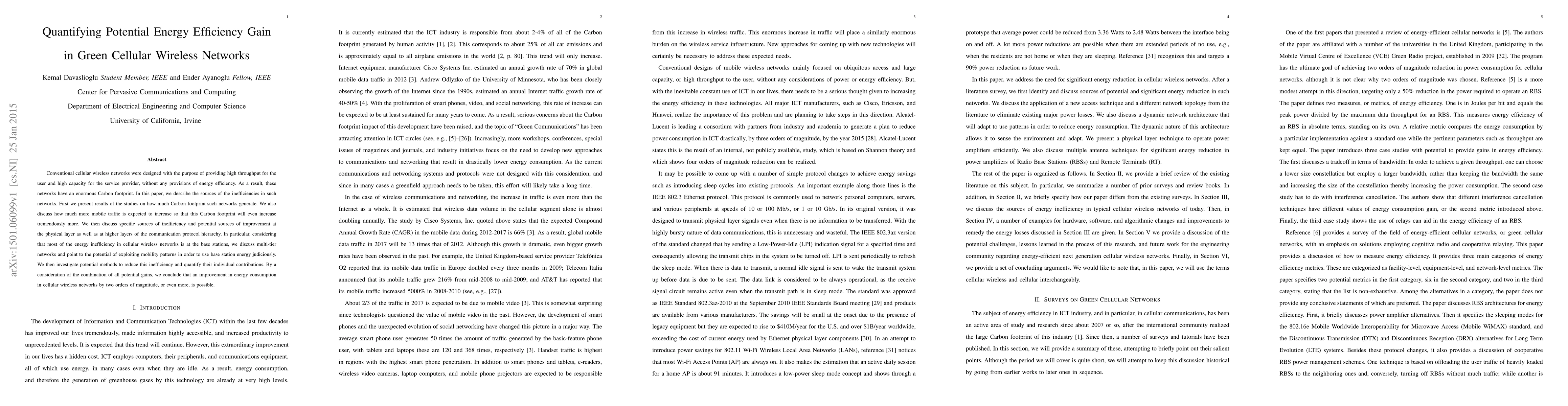 This paper identifies inefficiencies in conventional cellular wireless networks, particularly at base stations, and quantifies the potential for significant energy efficiency gains through improvements at both physical and higher protocol layers. It concludes that a two-order-of-magnitude reduction in energy consumption is feasible.