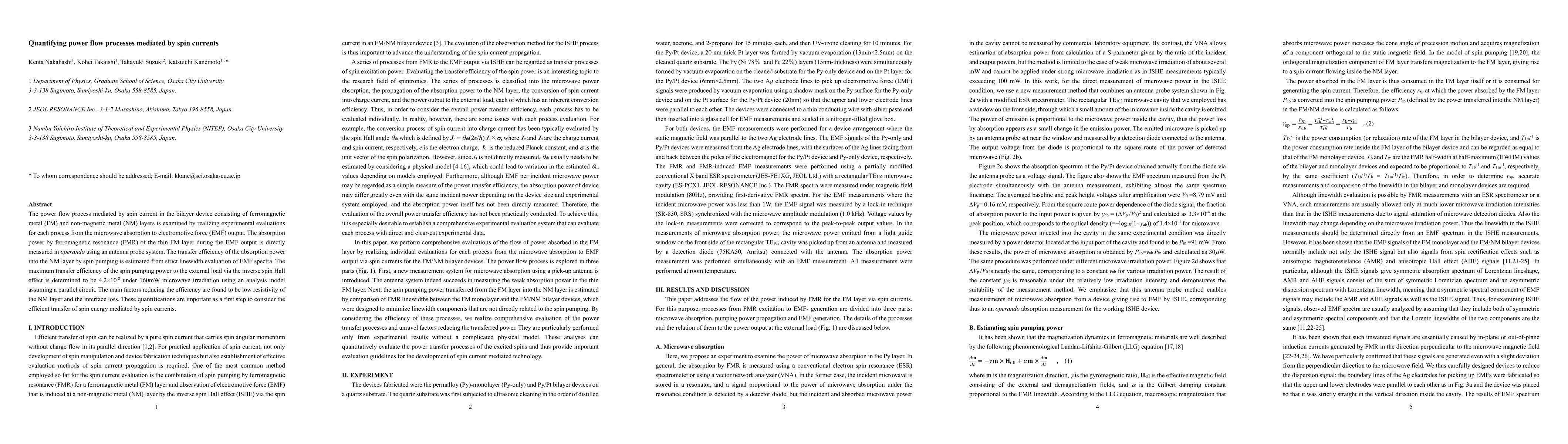 The paper presents a detailed analysis of power flow processes in spin current-mediated systems, including direct measurement techniques and efficiency quantification.