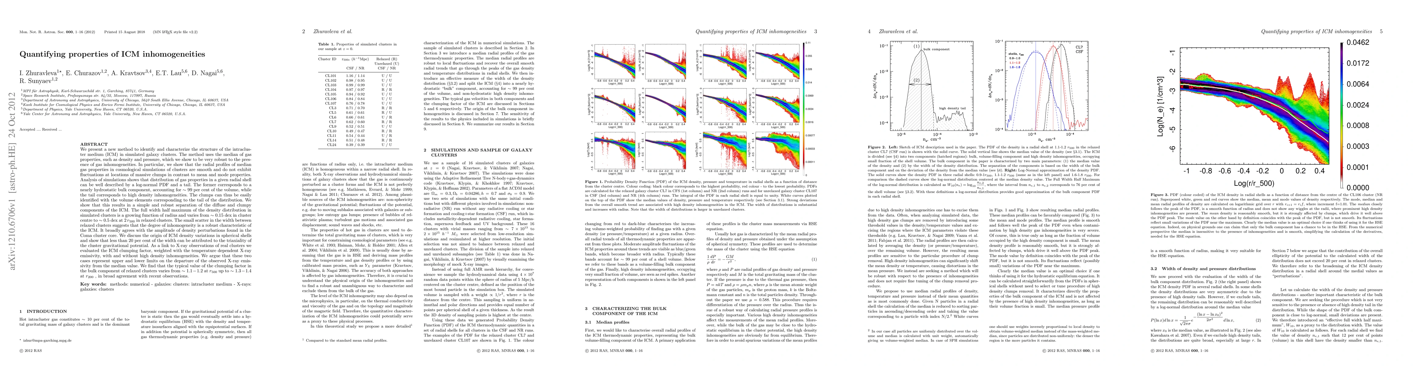 We present a new method to identify and characterize the structure of the intracluster medium (ICM) in simulated galaxy clusters. The method uses the median of gas properties, such as density and pressure, which we show to be very robust to the presence of gas inhomogeneities. In particular, we show that the radial profiles of median gas properties are smooth and do not exhibit fluctuations at locations of massive clumps in contrast to mean and mode properties. It is shown that distribution of gas properties in a given radial shell can be well described by a log-normal PDF and a tail. The former corresponds to a nearly hydrostatic bulk component, accounting for ~99% of the volume, while the tail corresponds to high density inhomogeneities. We show that this results in a simple and robust separation of the diffuse and clumpy components of the ICM. The FWHM of the density distribution grows with radius and varies from ~0.15 dex in cluster centre to ~0.5 dex at 2r_500 in relaxed clusters. The small scatter in the width between relaxed clusters suggests that the degree of inhomogeneity is a robust characteristic of the ICM. It broadly agrees with the amplitude of density perturbations in the Coma cluster. We discuss the origin of ICM density variations in spherical shells and show that less than 20% of the width can be attributed to the triaxiality of the cluster gravitational potential. As a link to X-ray observations of real clusters we evaluated the ICM clumping factor with and without high density inhomogeneities. We argue that these two cases represent upper and lower limits on the departure of the observed X-ray emissivity from the median value. We find that the typical value of the clumping factor in the bulk component of relaxed clusters varies from ~1.1-1.2 at r_500 up to ~1.3-1.4 at r_200, in broad agreement with recent observations.