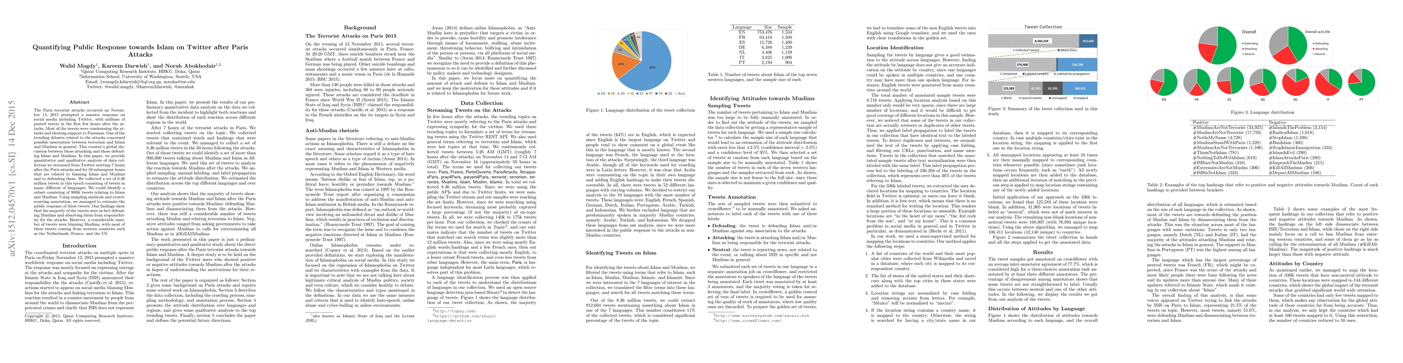 A study analyzed 8.36 million tweets after the Paris attacks to find that most were defending Muslims and absolving them of responsibility for the violence, while a significant number blamed Muslims, mainly from Western countries.