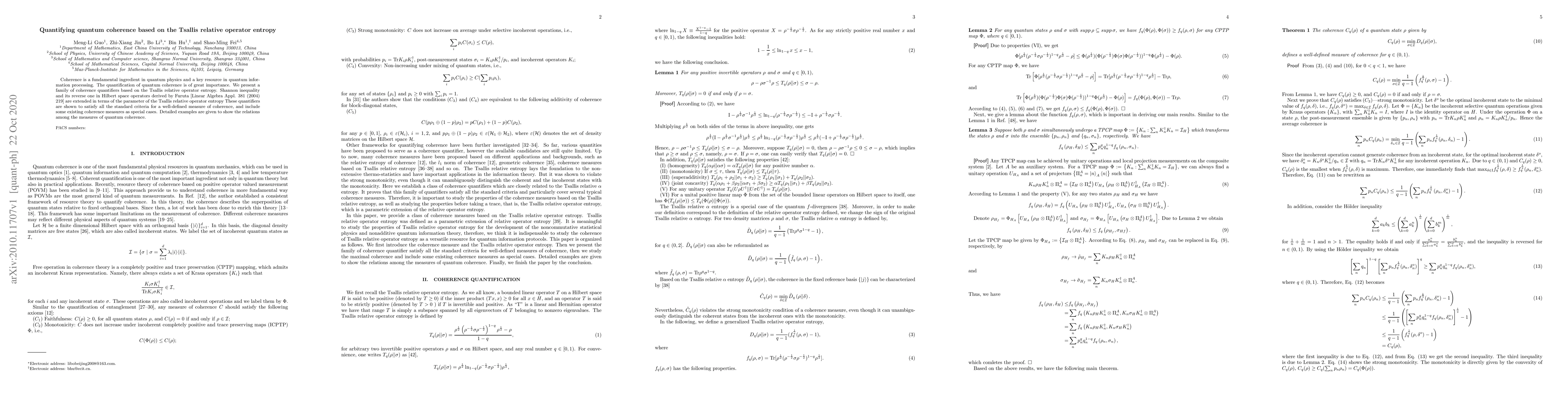 This paper introduces a new family of quantum coherence quantifiers based on the Tsallis relative operator entropy, extending Shannon inequalities and demonstrating their compliance with all standard coherence criteria. These measures encompass existing coherence metrics as specific cases and provide detailed examples illustrating their relationships.