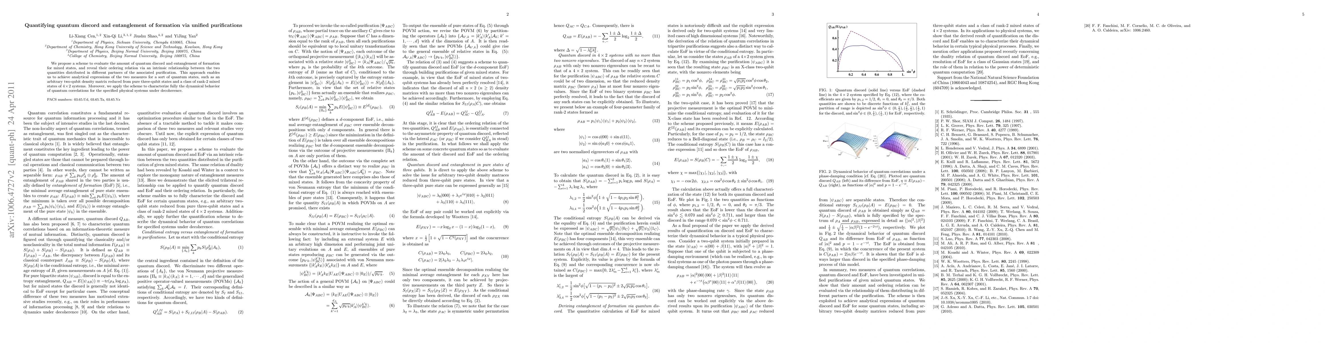 We propose a scheme to evaluate the amount of quantum discord and entanglement of formation for mixed states, and reveal their ordering relation via an intrinsic relationship between the two quantities distributed in different partners of the associated purification. This approach enables us to achieve analytical expressions of the two measures for a sort of quantum states, such as an arbitrary two-qubit density matrix reduced from pure three-qubit states and a class of rank-2 mixed states of 4\times 2 systems. Moreover, we apply the scheme to characterize fully the dynamical behavior of quantum correlations for the specified physical systems under decoherence.