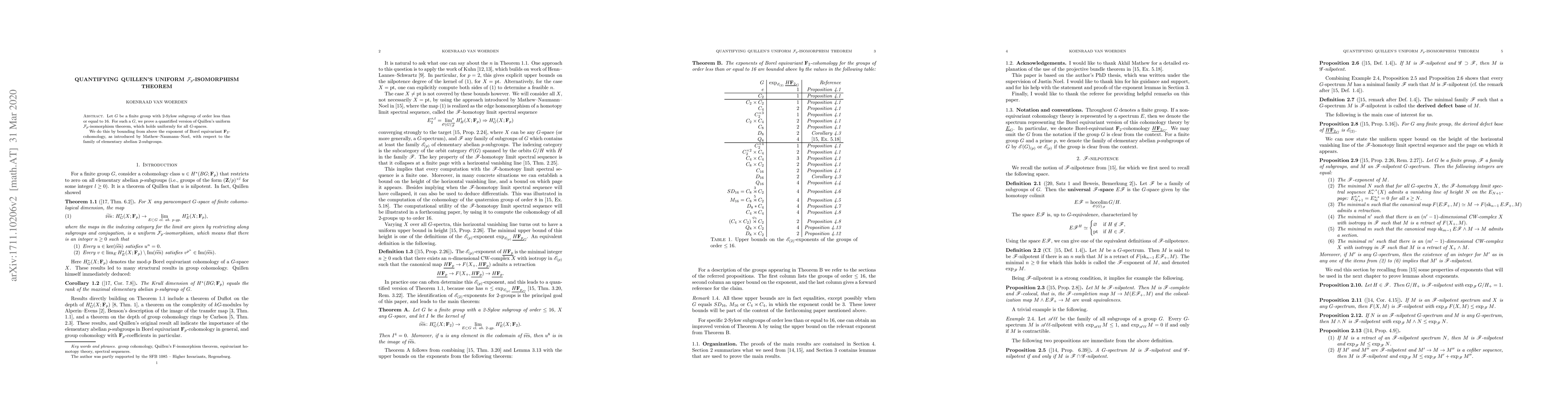Let $G$ be a finite group with $2$-Sylow subgroup of order less than or equal to 16. For such a $G$, we prove a quantified version of Quillen's uniform $\mathcal{F}_p$-isomorphism theorem, which holds uniformly for all $G$-spaces. We do this by bounding from above the exponent of Borel equivariant $\mathbf{F}_2$-cohomology, as introduced by Mathew-Naumann-Noel, with respect to the family of elementary abelian 2-subgroups.
