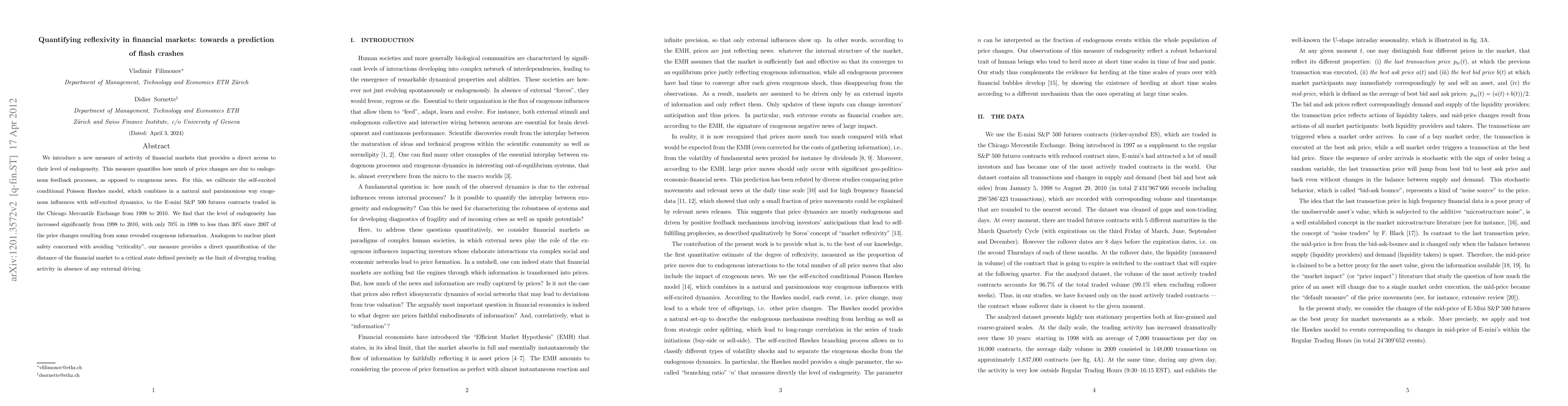 We introduce a new measure of activity of financial markets that provides a direct access to their level of endogeneity. This measure quantifies how much of price changes are due to endogenous feedback processes, as opposed to exogenous news. For this, we calibrate the self-excited conditional Poisson Hawkes model, which combines in a natural and parsimonious way exogenous influences with self-excited dynamics, to the E-mini S&P 500 futures contracts traded in the Chicago Mercantile Exchange from 1998 to 2010. We find that the level of endogeneity has increased significantly from 1998 to 2010, with only 70% in 1998 to less than 30% since 2007 of the price changes resulting from some revealed exogenous information. Analogous to nuclear plant safety concerned with avoiding "criticality", our measure provides a direct quantification of the distance of the financial market to a critical state defined precisely as the limit of diverging trading activity in absence of any external driving.