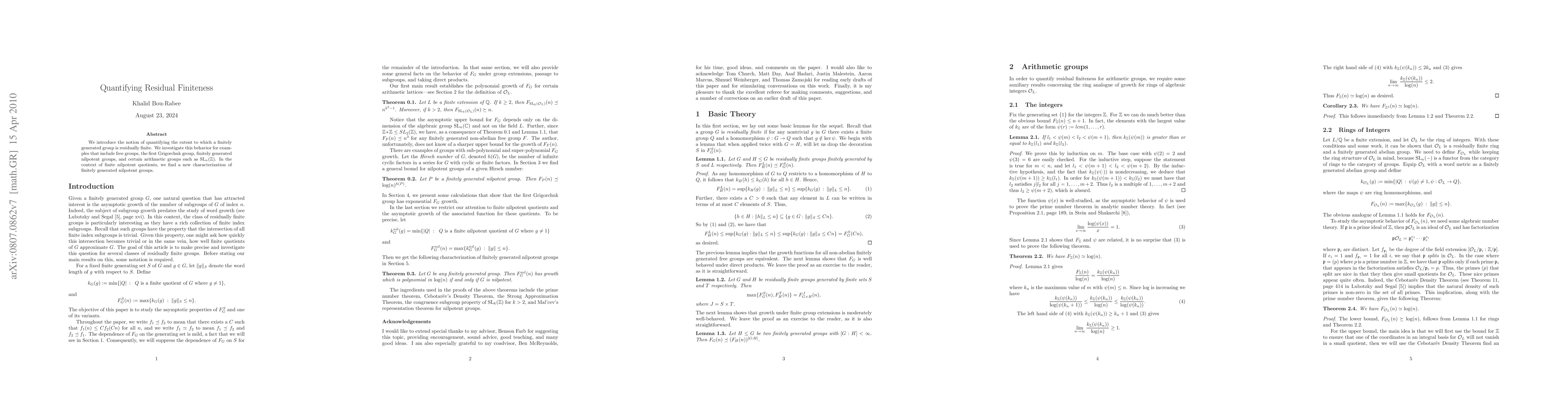 We introduce the concept of quantifying the extent to which a finitely generated group is residually finite. The quantification is carried out for some examples including free groups, the first Grigorchuk group, finitely generated nilpotent groups, and certain arithmetic groups such as $SL_n(\mathbb{Z})$. In the context of finite nilpotent quotients, we find a new characterization of nilpotent groups.