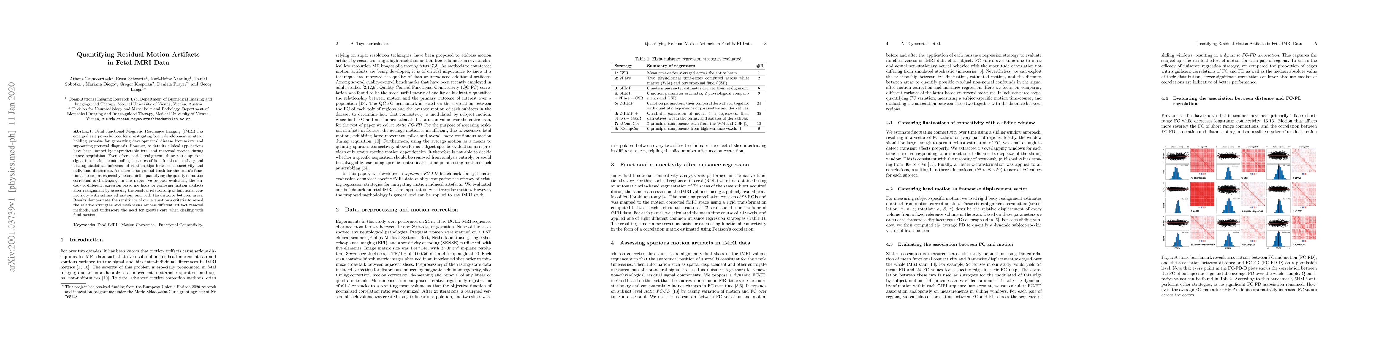 Fetal functional Magnetic Resonance Imaging (fMRI) has emerged as a powerful tool for investigating brain development in utero, holding promise for generating developmental disease biomarkers and supporting prenatal diagnosis. However, to date its clinical applications have been limited by unpredictable fetal and maternal motion during image acquisition. Even after spatial realigment, these cause spurious signal fluctuations confounding measures of functional connectivity and biasing statistical inference of relationships between connectivity and individual differences. As there is no ground truth for the brain's functional structure, especially before birth, quantifying the quality of motion correction is challenging. In this paper, we propose evaluating the efficacy of different regression based methods for removing motion artifacts after realignment by assessing the residual relationship of functional connectivity with estimated motion, and with the distance between areas. Results demonstrate the sensitivity of our evaluation's criteria to reveal the relative strengths and weaknesses among different artifact removal methods, and underscore the need for greater care when dealing with fetal motion.