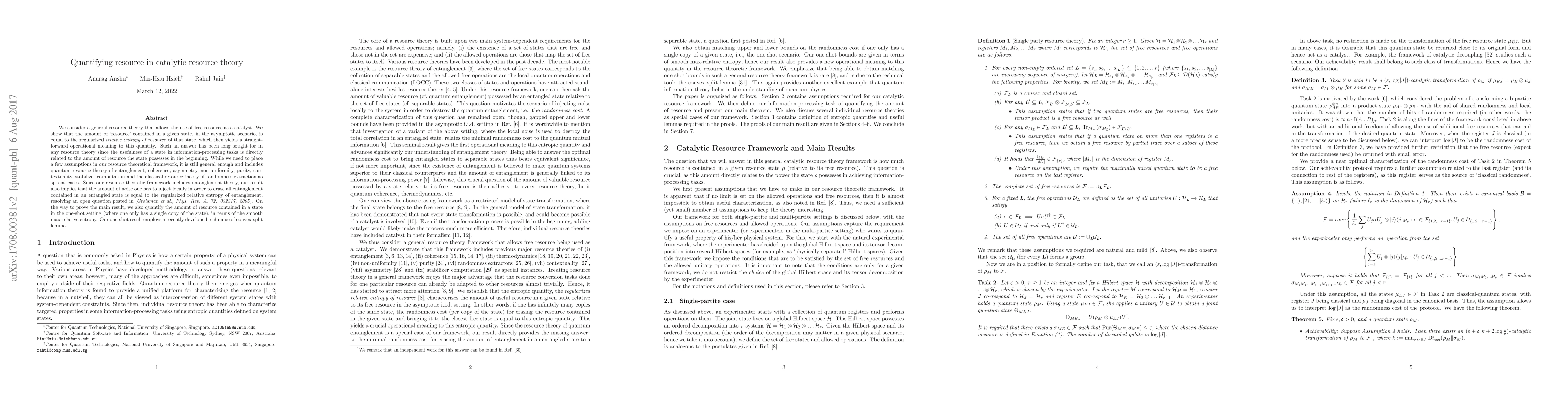 This paper develops a general resource theory framework where free resources act as catalysts, showing that the asymptotic resource content of a state equals its regularized relative entropy. This result provides a clear operational meaning for resource quantification and resolves an open question regarding entanglement erasure. The framework encompasses various quantum and classical resource theories.