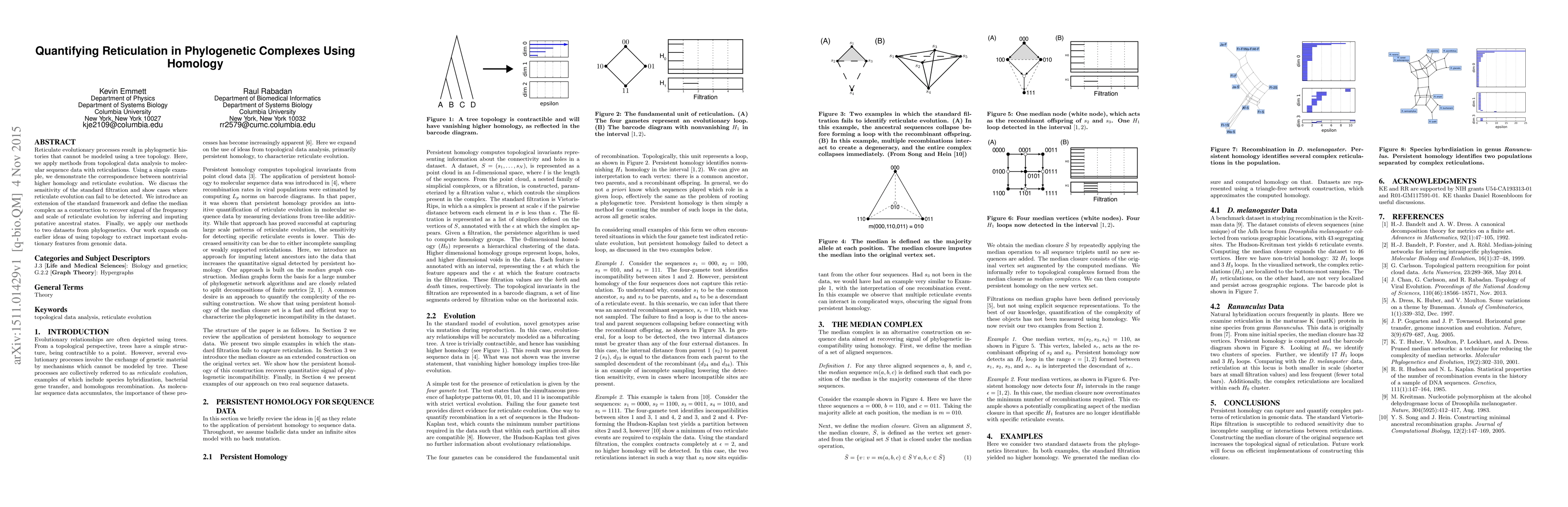 Reticulate evolutionary processes result in phylogenetic histories that cannot be modeled using a tree topology. Here, we apply methods from topological data analysis to molecular sequence data with reticulations. Using a simple example, we demonstrate the correspondence between nontrivial higher homology and reticulate evolution. We discuss the sensitivity of the standard filtration and show cases where reticulate evolution can fail to be detected. We introduce an extension of the standard framework and define the median complex as a construction to recover signal of the frequency and scale of reticulate evolution by inferring and imputing putative ancestral states. Finally, we apply our methods to two datasets from phylogenetics. Our work expands on earlier ideas of using topology to extract important evolutionary features from genomic data.