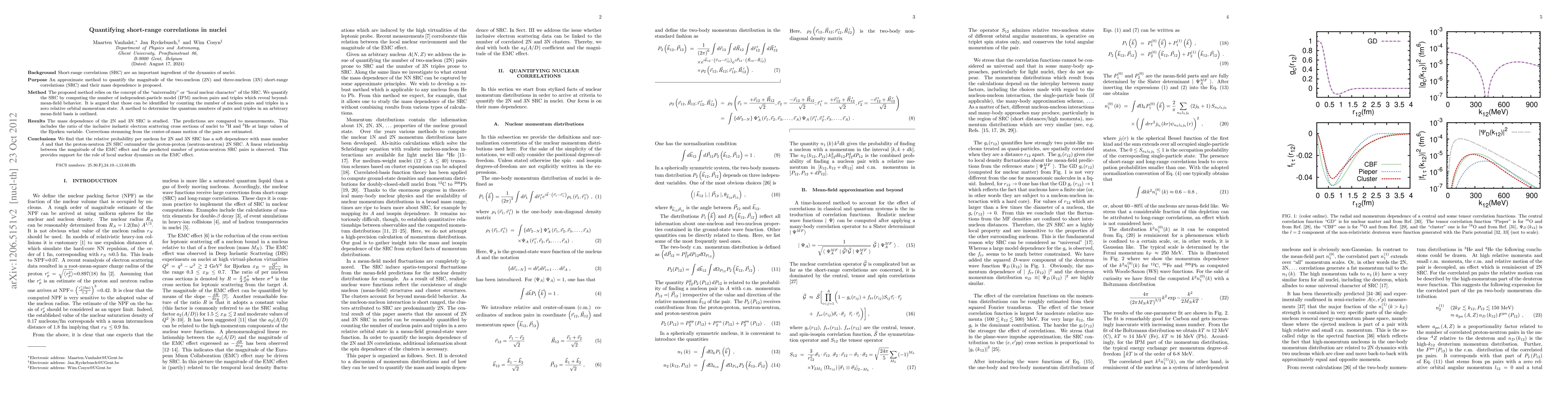 Researchers developed a method to quantify short-range correlations in nuclei, finding that these correlations have a soft dependence on mass number A and outnumber proton-neutron pairs over proton-proton pairs.