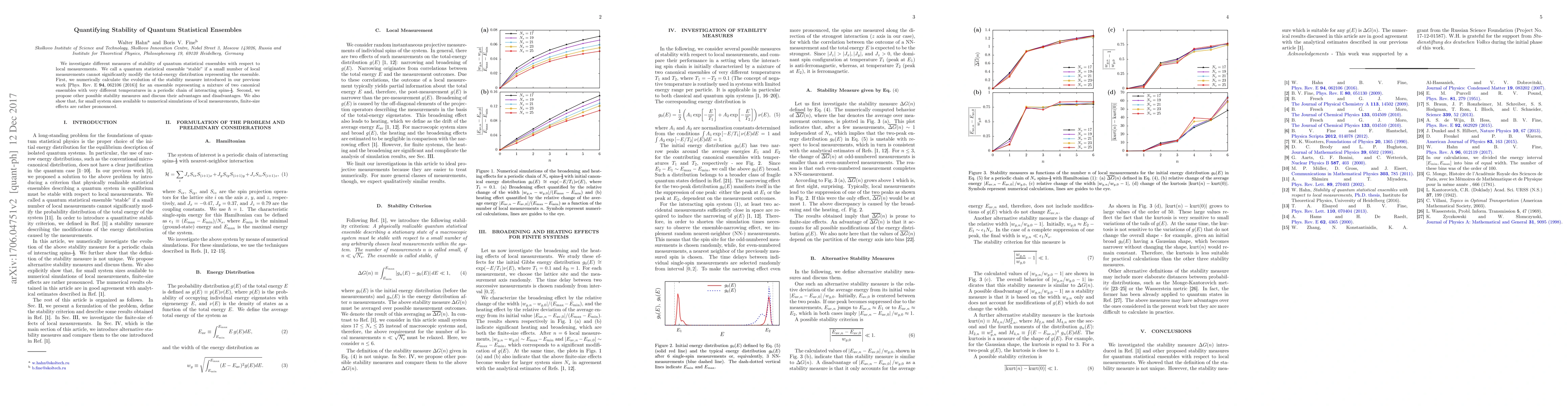 Researchers investigate stability of quantum statistical ensembles to local measurements, finding that small changes can significantly impact total-energy distribution for certain system configurations.