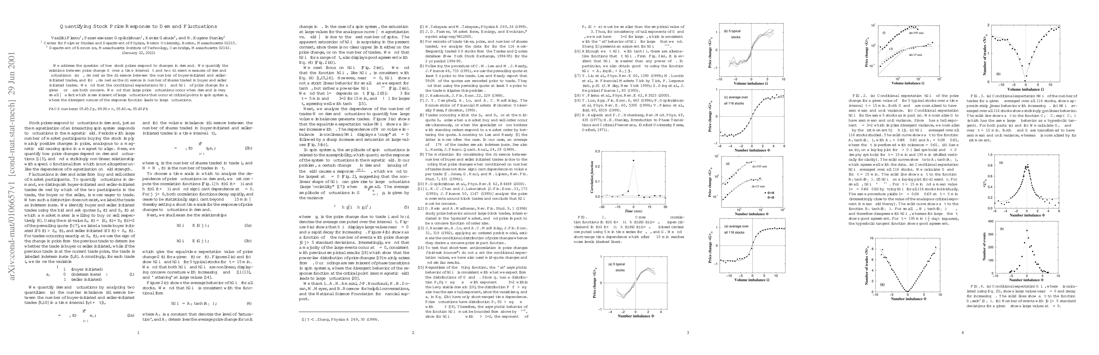 This paper quantifies how stock prices respond to fluctuations in demand, measuring changes in price ($G$) relative to two demand metrics ($\Phi$ and $\Omega$). It finds that both measures lead to concave conditional expectations of price changes, with large price fluctuations occurring when demand is minimal, akin to critical points in spin systems.