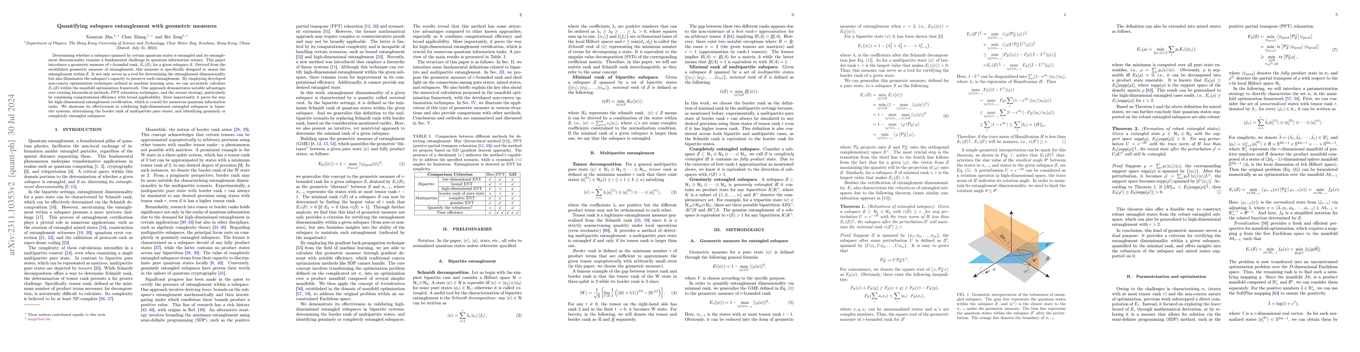 This paper introduces a geometric measure, $E_r(S)$, for quantifying subspace entanglement, leveraging non-convex optimization techniques. It outperforms existing methods in accuracy and efficiency, offering new applications in quantum information science, particularly in validating entangled subspaces and determining multipartite state borders.