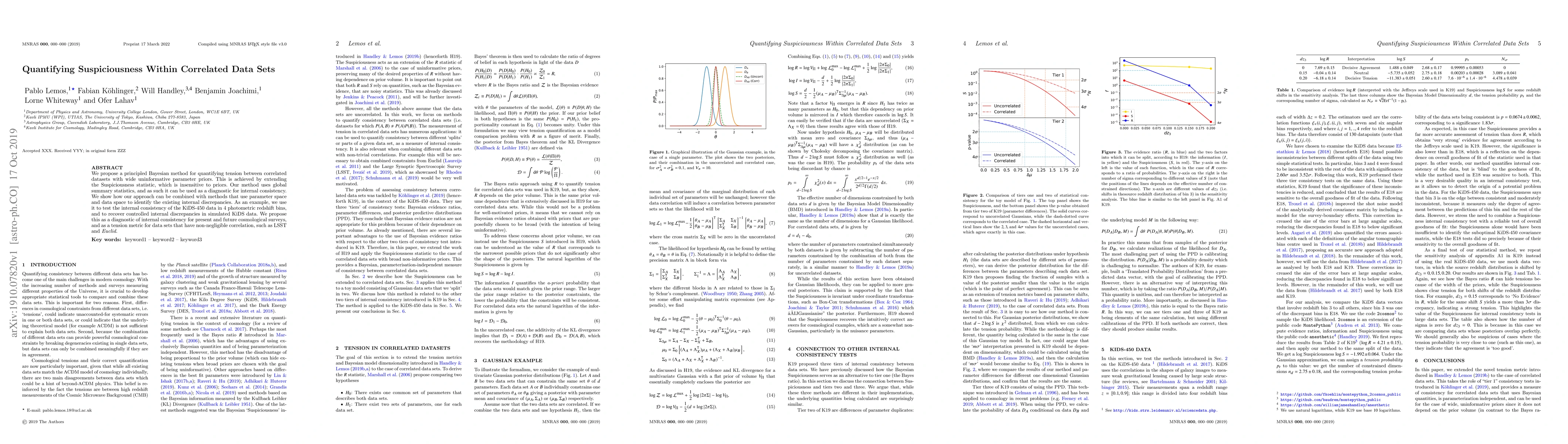 We propose a principled Bayesian method for quantifying tension between correlated datasets with wide uninformative parameter priors. This is achieved by extending the Suspiciousness statistic, which is insensitive to priors. Our method uses global summary statistics, and as such it can be used as a diagnostic for internal consistency. We show how our approach can be combined with methods that use parameter space and data space to identify the existing internal discrepancies. As an example, we use it to test the internal consistency of the KiDS-450 data in 4 photometric redshift bins, and to recover controlled internal discrepancies in simulated KiDS data. We propose this as a diagnostic of internal consistency for present and future cosmological surveys, and as a tension metric for data sets that have non-negligible correlation, such as LSST and Euclid.