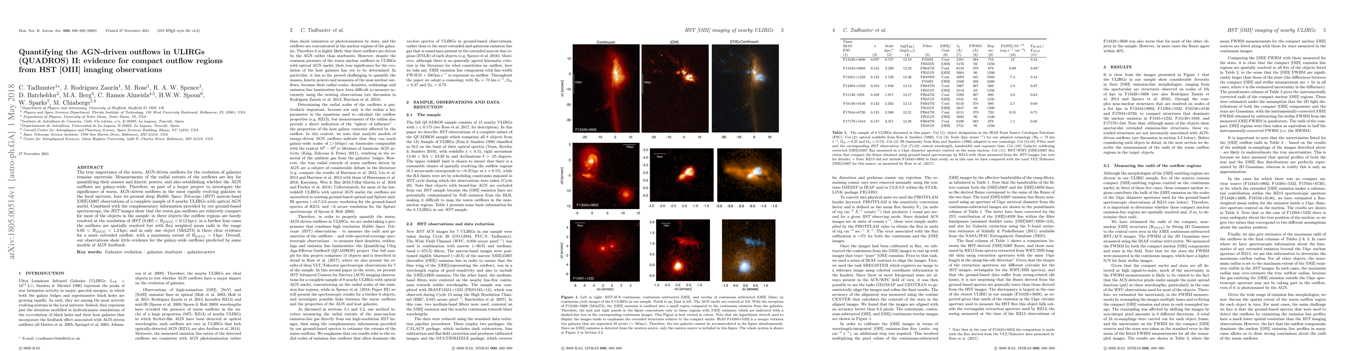 This study uses HST [OIII] imaging to investigate the radial extents of AGN-driven outflows in 8 nearby ULIRGs, finding that most outflows are compact, with only one object showing a more extended outflow. The results suggest limited support for galaxy-wide AGN outflows, challenging some AGN feedback models.