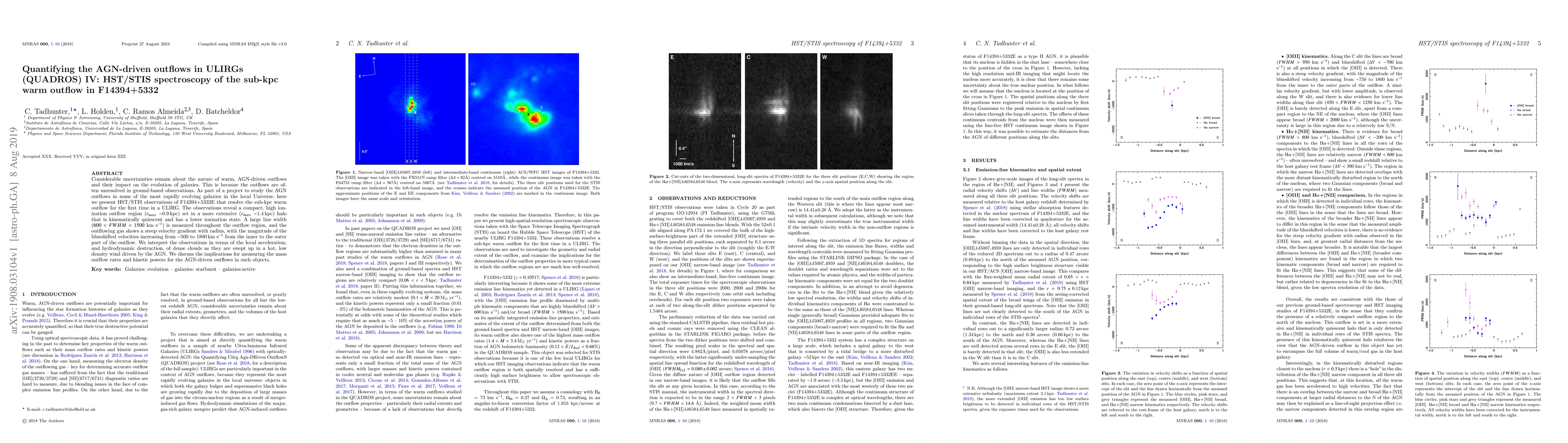 This study uses HST/STIS spectroscopy to resolve the sub-kpc warm outflow in the ULIRG F14394+5332E, revealing a compact, high-ionization outflow region within a larger, quiescent halo. The outflow exhibits a steep velocity gradient and large line width, suggesting local acceleration and hydrodynamic destruction of dense clouds in an AGN-driven wind.