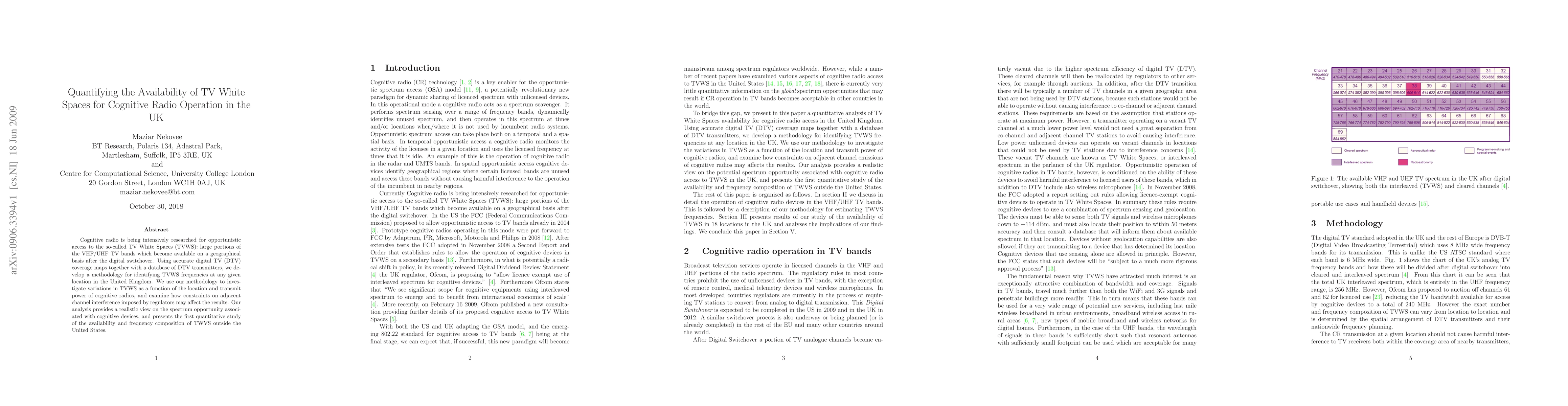 This paper develops a methodology to identify TV White Spaces (TVWS) in the UK using DTV coverage maps, and examines their availability for cognitive radios, considering location, transmit power, and regulatory interference constraints. The study provides a quantitative analysis of TVWS availability outside the United States.