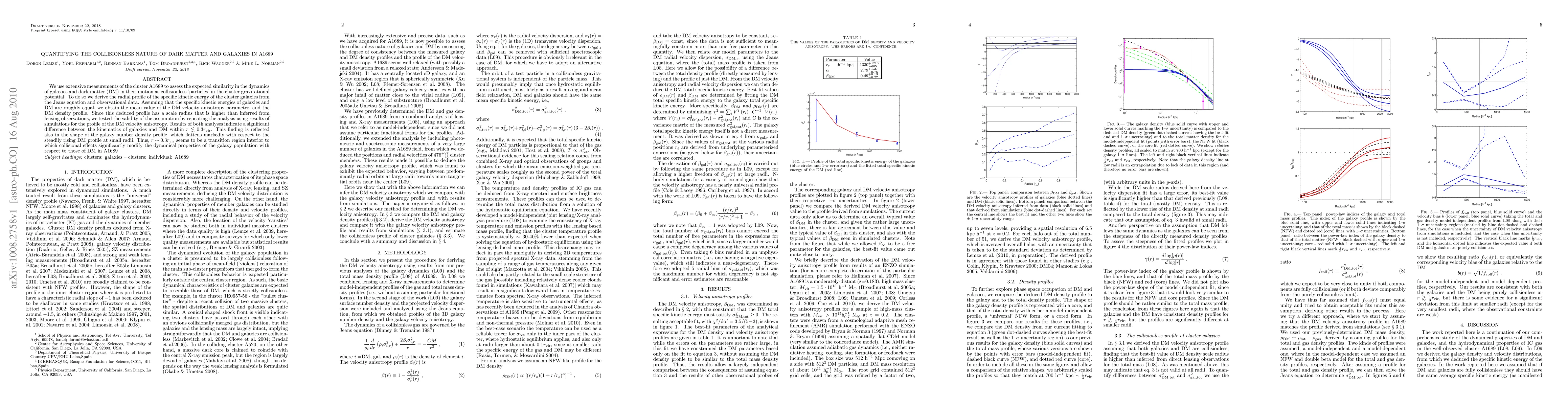 We use extensive measurements of the cluster A1689 to assess the expected similarity in the dynamics of galaxies and dark matter (DM) in their motion as collisionless `particles' in the cluster gravitational potential. To do so we derive the radial profile of the specific kinetic energy of the cluster galaxies from the Jeans equation and observational data. Assuming that the specific kinetic energies of galaxies and DM are roughly equal, we obtain the mean value of the DM velocity anisotropy parameter, and the DM density profile. Since this deduced profile has a scale radius that is higher than inferred from lensing observations, we tested the validity of the assumption by repeating the analysis using results of simulations for the profile of the DM velocity anisotropy. Results of both analyses indicate a significant difference between the kinematics of galaxies and DM within $r \lesssim 0.3r_{\rm vir}$. This finding is reflected also in the shape of the galaxy number density profile, which flattens markedly with respect to the steadily rising DM profile at small radii. Thus, $r \sim 0.3r_{\rm vir}$ seems to be a transition region interior to which collisional effects significantly modify the dynamical properties of the galaxy population with respect to those of DM in A1689
