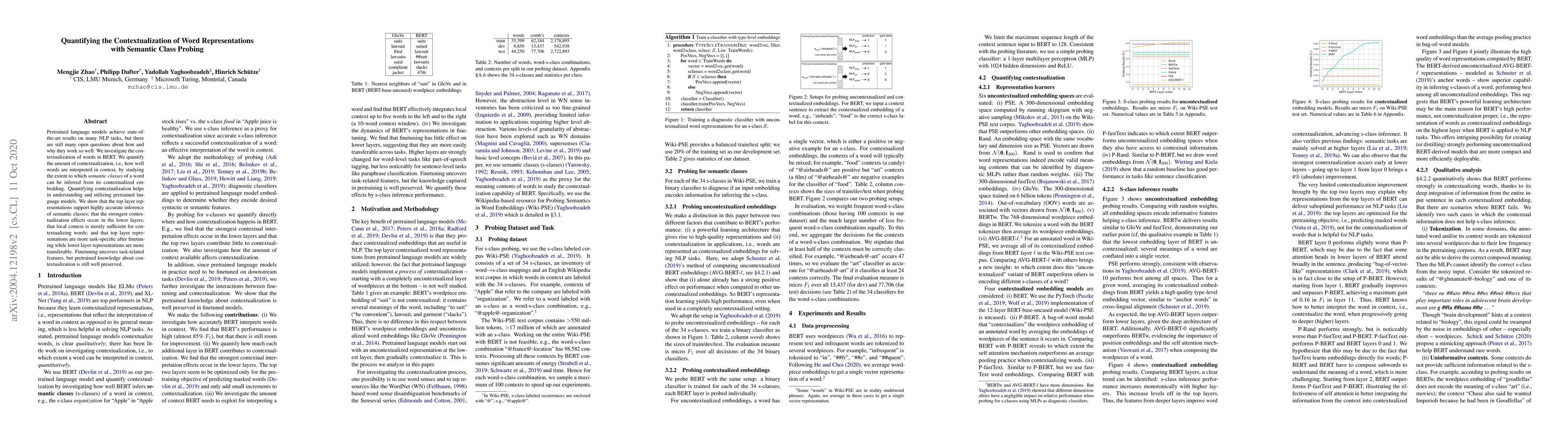 The paper examines BERT's contextualization of words, finding that top layer representations accurately infer semantic classes, with strongest effects in lower layers. Local context is usually enough for inference, and while finetuning introduces task-specific features, pretrained knowledge remains preserved.