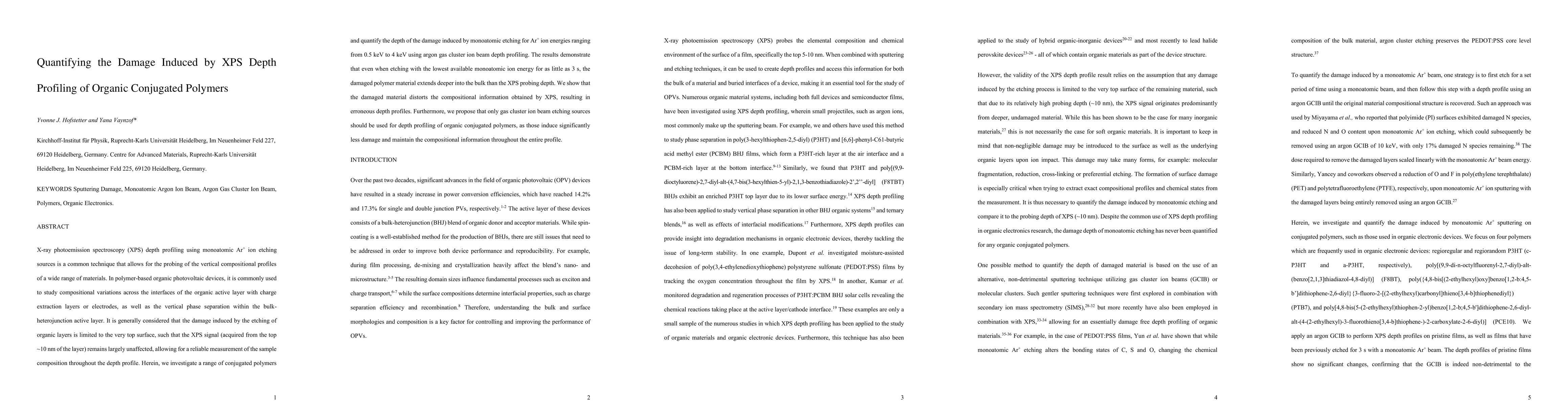 XPS depth profiling of organic conjugated polymers induces damage deeper than previously thought, distorting compositional information and requiring alternative etching methods.