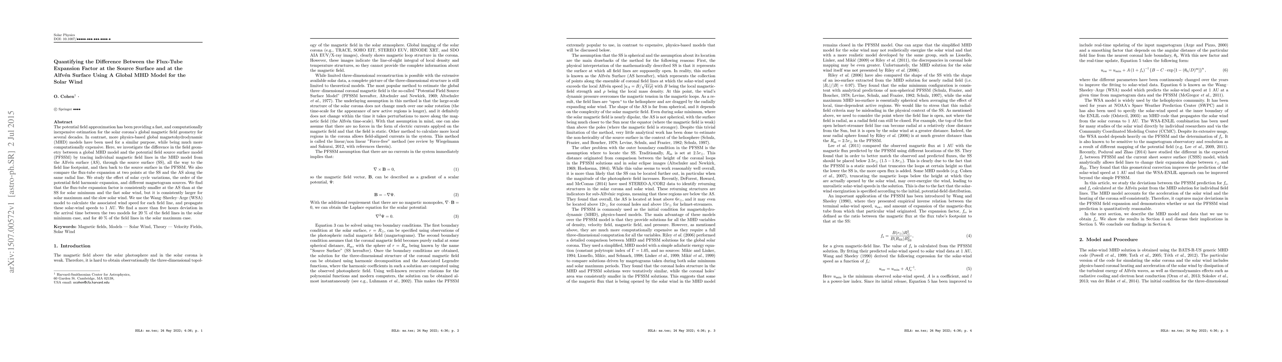 The potential field approximation has been providing a fast, and computationally inexpensive estimation for the solar corona's global magnetic field geometry for several decades. In contrast, more physics-based global magnetohydrodynamic (MHD) models have been used for a similar purpose, while being much more computationally expensive. Here, we investigate the difference in the field geometry between a global MHD model and the potential field source surface model (PFSSM) by tracing individual magnetic field lines in the MHD model from the Alfven surface (AS), through the source surface (SS), all the way to the field line footpoint, and then back to the source surface in the PFSSM. We also compare the flux-tube expansion at two points at the SS and the AS along the same radial line. We study the effect of solar cycle variations, the order of the potential field harmonic expansion, and different magnetogram sources. We find that the flux-tube expansion factor is consistently smaller at the AS than at the SS for solar minimum and the fast solar wind, but it is consistently larger for solar maximum and the slow solar wind. We use the Wang--Sheeley--Arge (WSA) model to calculate the associated wind speed for each field line, and propagate these solar-wind speeds to 1AU. We find a more than five hours deviation in the arrival time between the two models for 20% of the field lines in the solar minimum case, and for 40% of the field lines in the solar maximum case.