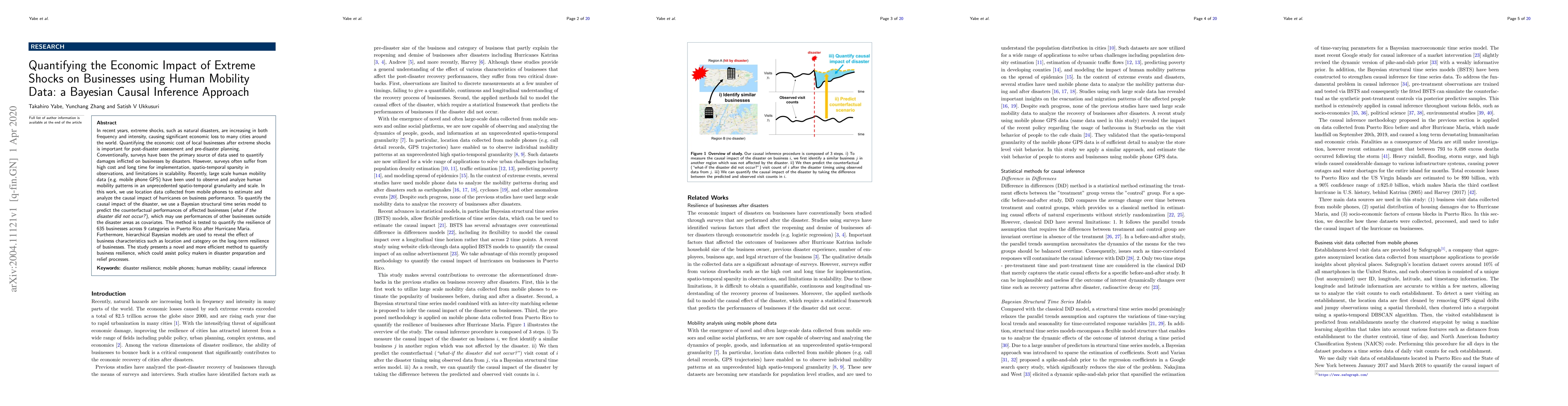 This study uses mobile phone GPS data to estimate the causal impact of hurricanes on business performance in Puerto Rico, offering a novel and efficient method for quantifying resilience after disasters. The research provides insights for policy makers in disaster preparation and relief processes.