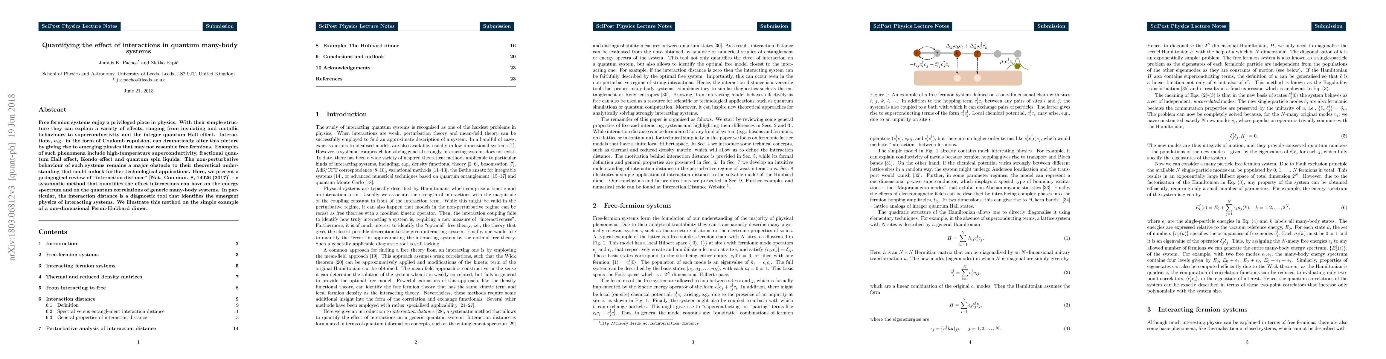 This paper reviews a method called "interaction distance" to quantify the effects of interactions in quantum many-body systems, demonstrating how it identifies emergent physics beyond free fermions, illustrated with a one-dimensional Fermi-Hubbard dimer. The method aims to unlock a deeper theoretical understanding of complex phenomena like high-temperature superconductivity.