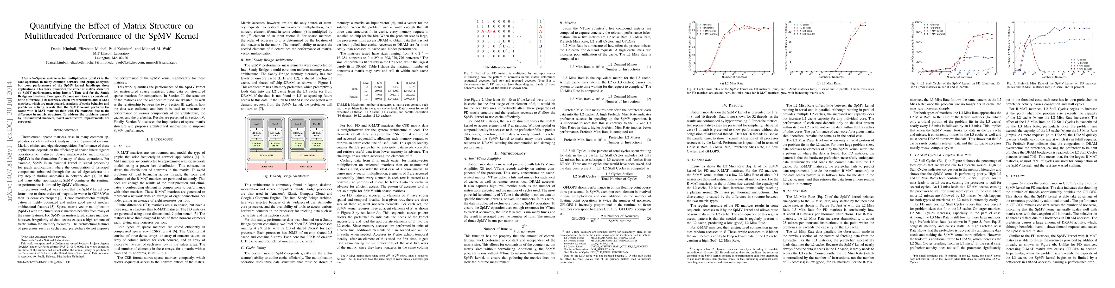 Sparse matrix-vector multiplication (SpMV) is the core operation in many common network and graph analytics, but poor performance of the SpMV kernel handicaps these applications. This work quantifies the effect of matrix structure on SpMV performance, using Intel's VTune tool for the Sandy Bridge architecture. Two types of sparse matrices are considered: finite difference (FD) matrices, which are structured, and R-MAT matrices, which are unstructured. Analysis of cache behavior and prefetcher activity reveals that the SpMV kernel performs far worse with R-MAT matrices than with FD matrices, due to the difference in matrix structure. To address the problems caused by unstructured matrices, novel architecture improvements are proposed.