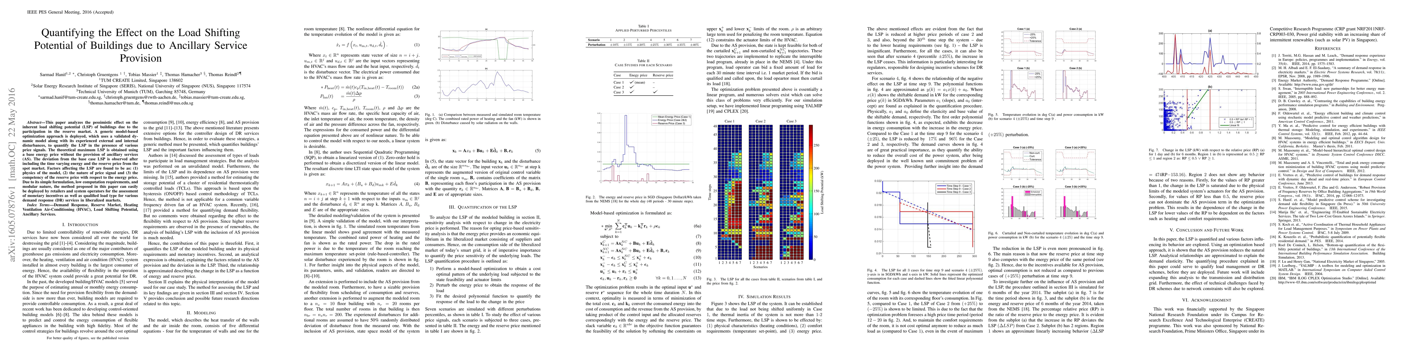 This paper analyzes how providing ancillary services affects a building's ability to shift its load in response to price signals. It finds that physics, price signal nature, and reserve price competency impact the load shifting potential.