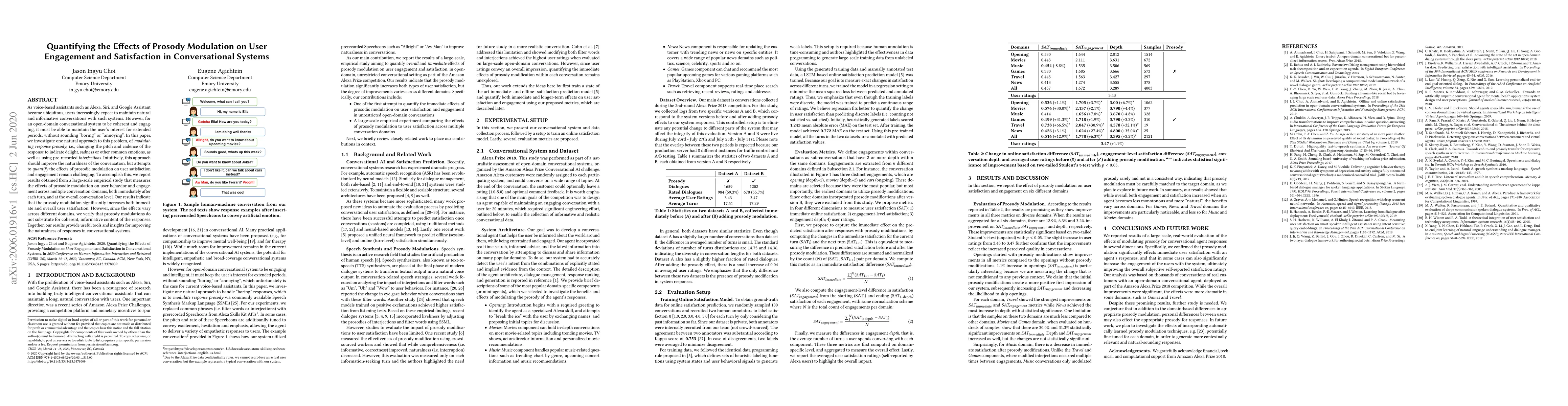 This paper investigates how modulating prosody in conversational systems affects user engagement and satisfaction. Results from a large-scale study show that prosody modulation significantly boosts both immediate and overall user satisfaction, though its effectiveness varies across different conversation domains, emphasizing the need for coherent content alongside prosodic changes.