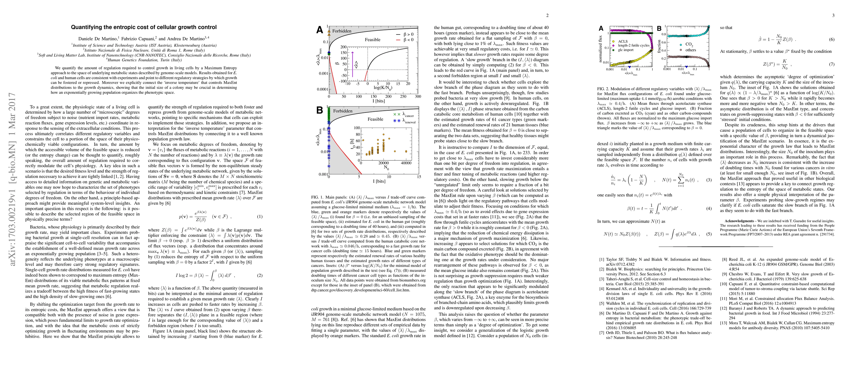 We quantify the amount of regulation required to control growth in living cells by a Maximum Entropy approach to the space of underlying metabolic states described by genome-scale models. Results obtained for E. coli and human cells are consistent with experiments and point to different regulatory strategies by which growth can be fostered or repressed. Moreover we explicitly connect the `inverse temperature' that controls MaxEnt distributions to the growth dynamics, showing that the initial size of a colony may be crucial in determining how an exponentially growing population organizes the phenotypic space.